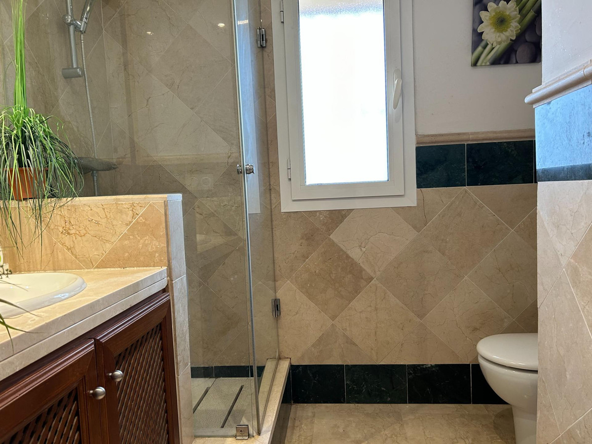CASA ADOSADA IN FIRST LINEA DE GOLF, in SAN ROQUE CLUB, with PRIVATE JARDÍN and community PISCINA, orientation SW. This magnificent house has 3 DORMITORIES and 3 BANKS, Courtesy Astheus, living room with fireplace, and its own private garden as well as communal gardens and the large communal pool. It has a large kitchen with dining room and separate laundry room. With 70 square meters of private garden and a covered parking area in the back of the house. In addition to the beautiful PRIVATE JARDÍN it has a SOLARIUM with extraordinary views. It is a house with southwest facing views from the living room and with solarium and therefore a warm house in the winter months. It has air conditioning cold and heat, underfloor heating in the bathrooms and is fully furnished and equipped. marble floors and very bright.. . _ .