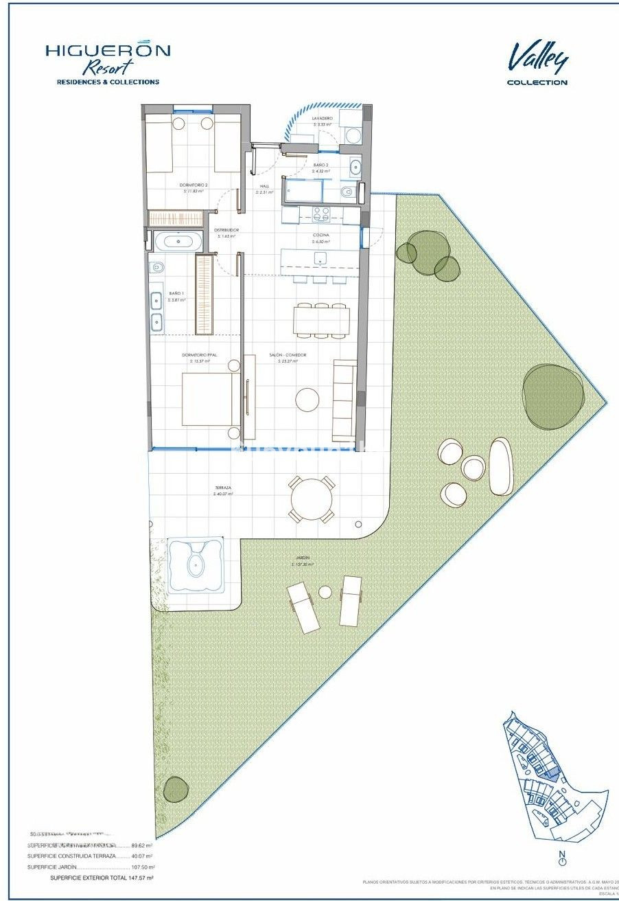 With a total of 237 m² built, the property is distributed into 89 m² of interior space, a 40 m² terrace, and an impressive 107 m² private garden with a jacuzzi—ideal for enjoying the Mediterranean lifestyle all year round, whether relaxing or entertaining.