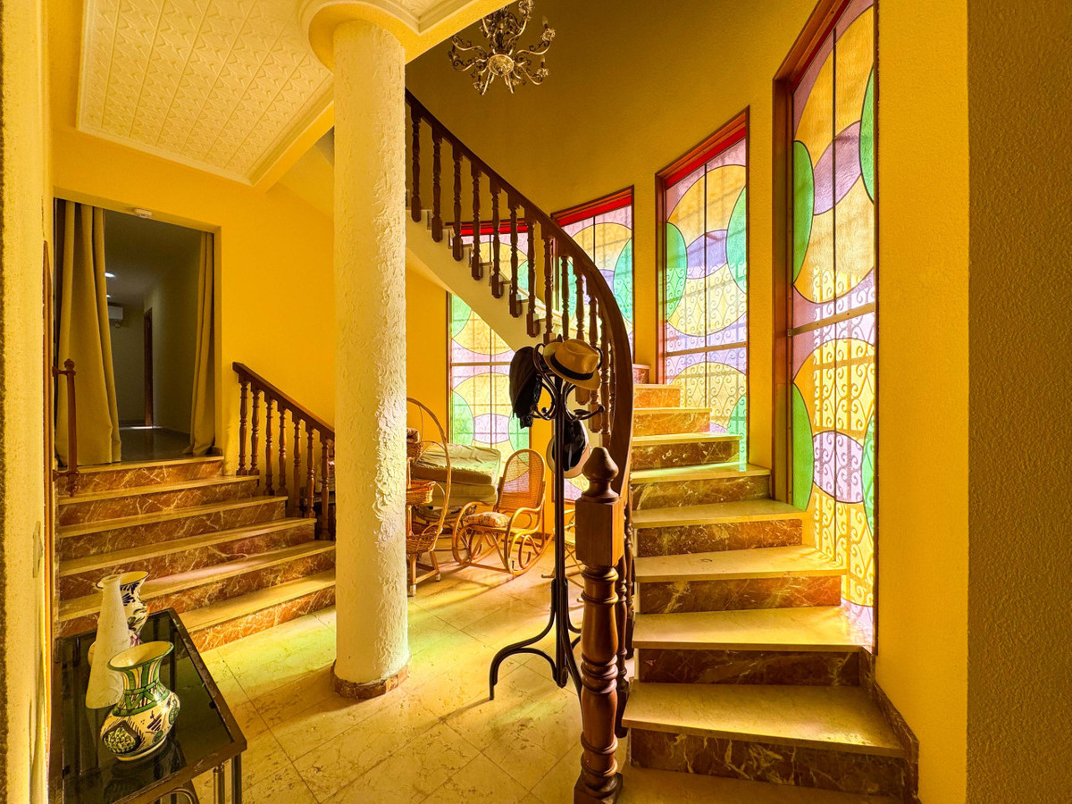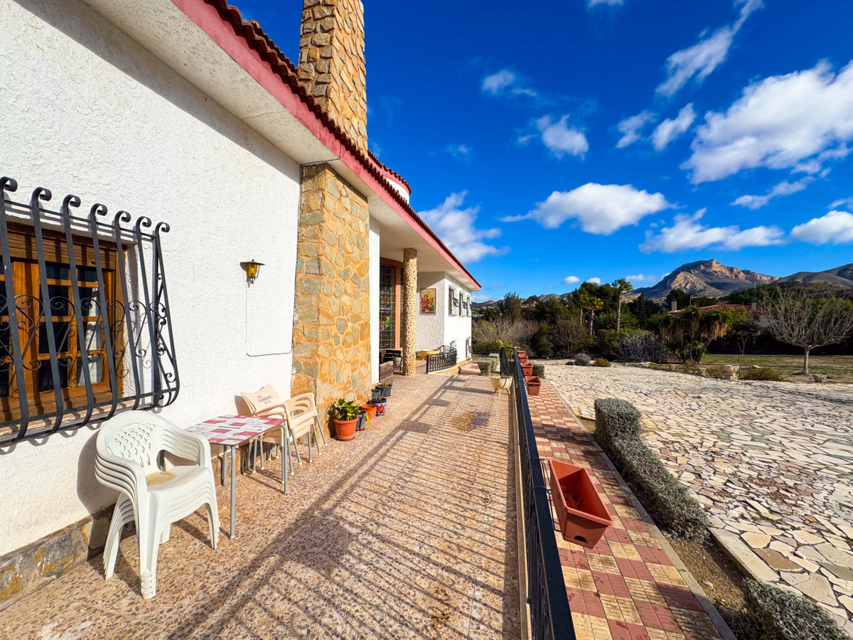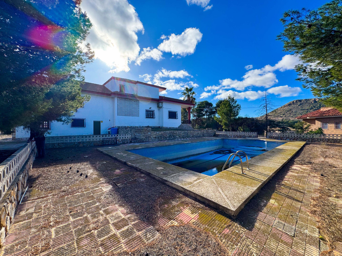 Rymlig medelhusvilla belägen mellan de prestigefyllda bostadsområdena Las Salinetas och Loma Bada, Elda/Petrer, med 5 sovrum, privat pool och vacker öppen utsikt över bergen, belägen endast 1 km från centrala Elda och cirka 20 minuter från Alicante och dess stränder. En unik fastighet som kombinerar rymlighet, privatliv och natur med utmärkta förbindelser och närhet till alla tjänster.Fastigheten ligger på en unik tomt på cirka 5 200 m², en typ av mark som är svår att hitta idag eftersom det inte är tillåtet att bygga bostäder av denna storlek i området. Tomten är fördelad på olika nivåer och erbjuder trädgård, stora terrasser, privat fruktträdgård, en trevlig tallskog med cirka 60 tallar som ger naturlig skugga och integritet, samt en liten fotbollsplan idealisk för familjeaktiviteter. Det finns också två vattenanslutningar för att underlätta utomhusunderhåll.Utomhus finns en stor pool på 14x7 m, anlagda områden, ett täckt carport med plats för upp till fyra fordon och en charmig grillplats perfekt för utomhussammankomster. Den nedre nivån rymmer hjälputrymmen som sommarkök, vinkällare, förråd, utomhusbadrum och olika förvaringsutrymmen.Huvudbyggnaden, cirka 350 m², erbjuder en rymlig och ljus layout, med alla rum utåt och en privilegierad orientering. Interiören har en ståtlig entréhall med elegant böjd trappa i massiv trä och marmorsteg, ett stort vardagsrum, matsal med öppen spis och en lounge som är idealisk för familje- och sociala sammankomster. Den har också ett separat kök med direkt tillgång till halv-källaren och flera förvaringsutrymmen.Huset har fem sovrum, varav ett är en svit, alla med inbyggda garderober och trädörrar som ger värme och karaktär, samt flera extra badrum som kompletterar bostaden. På övervåningen finns ett vardagsrum, ett extra sovrum med fullständigt badrum och tillgång till en solarium på cirka 30 m² med öppen utsikt.Fastigheten kräver renovering och erbjuder stora möjligheter till uppdatering och anpassning, även om den för närvarande är inflyttningsbar. Den har el, vatten och septiktank, och eftersom den ligger på urban mark finns det flera möjligheter till förbättring och anpassning.Läget är utmärkt, med snabb tillgång till motorväg A-31 inom några minuter, endast 5 minuter från alla lokala tjänster, 1 km från centrala Elda och cirka 15 minuter från den prestigefyllda golfklubben La Alenda.Tveka inte att kontakta oss för mer information eller för att boka en visning.