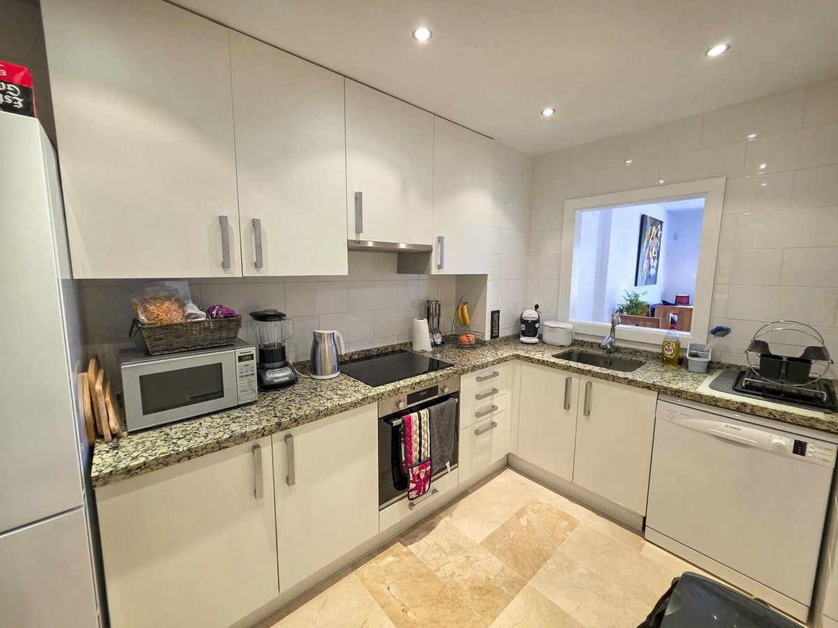 A semi-open, fully fitted kitchen with an adjoining utility room combines practicality with modern design. The home offers two generous double bedrooms with fitted wardrobes and two stylish bathrooms, including a luxurious en-suite with both shower and bath. The master bedroom also enjoys direct access to the terrace, allowing you to wake up to stunning sea views.
