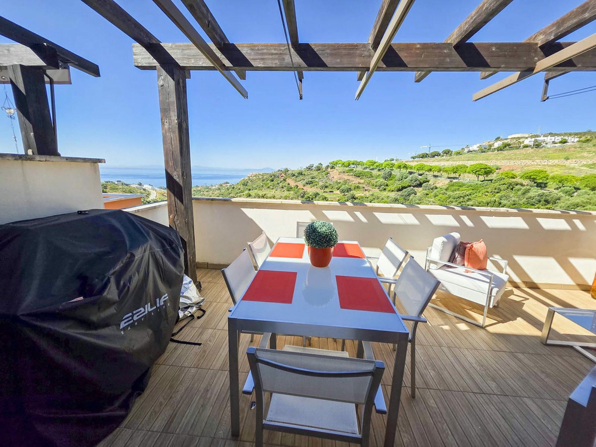The apartment welcomes you with a spacious entrance hall leading into a bright and airy living area. From here, floor-to-ceiling doors open onto a 24 m² south-facing terrace, where you can enjoy panoramic views of the Mediterranean, Gibraltar, and the surrounding landscape—views guaranteed to inspire every day.