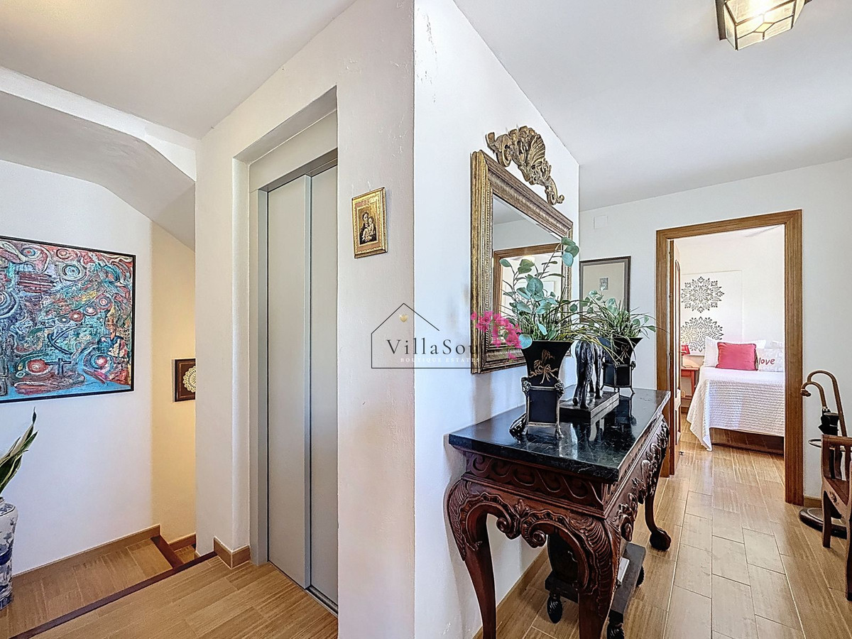The property is distributed across multiple levels, carefully designed to embrace its elevated position and capture uninterrupted views over the Mediterranean. A private lift connects from the garage level all the way up to the main living areas, allowing you to move effortlessly through the home while fully enjoying its architecture and views.