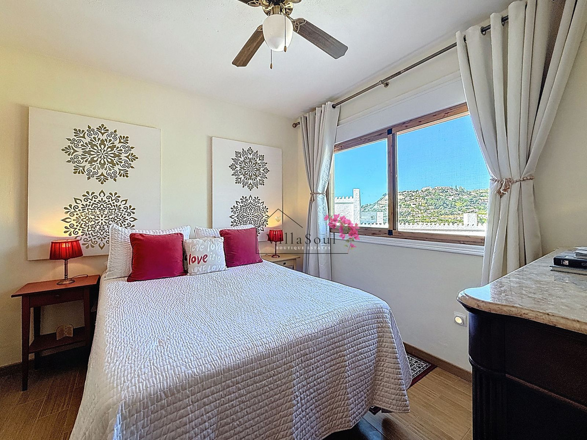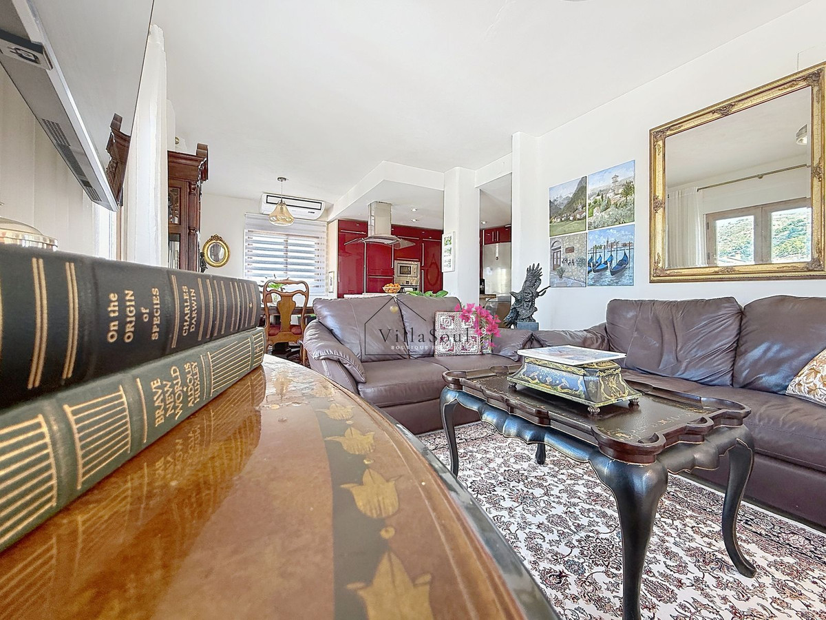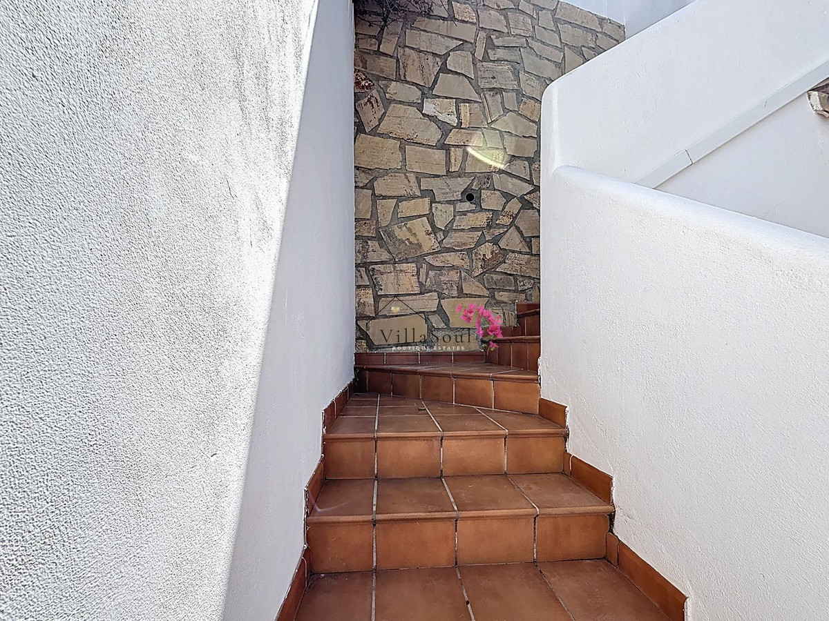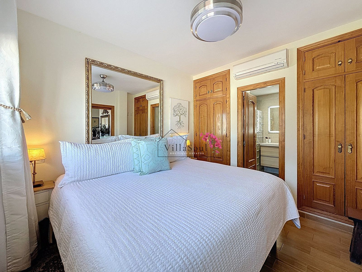 On the first level, two spacious bedrooms each feature their own en-suite bathroom, creating a refined and private sleeping area. One level higher, the main living space unfolds into a bright and elegant environment, with a beautiful open kitchen fitted with Bosch appliances, a guest toilet, and direct access to a terrace with stunning sea views. Light, space and atmosphere come together here in a natural and effortless way.