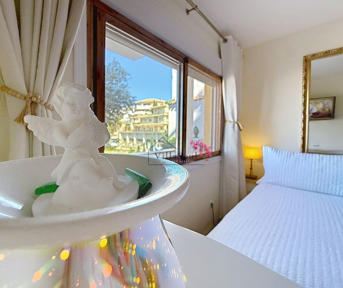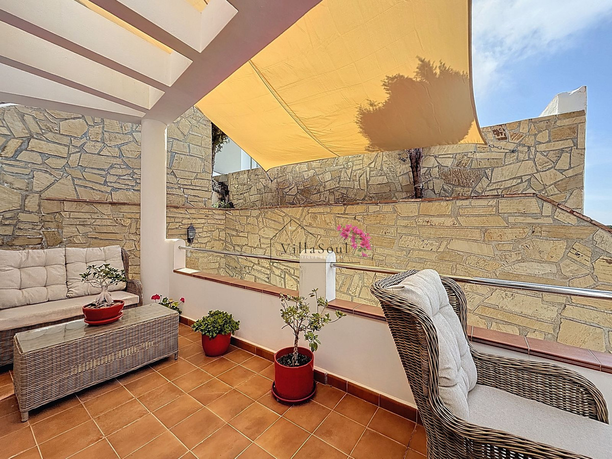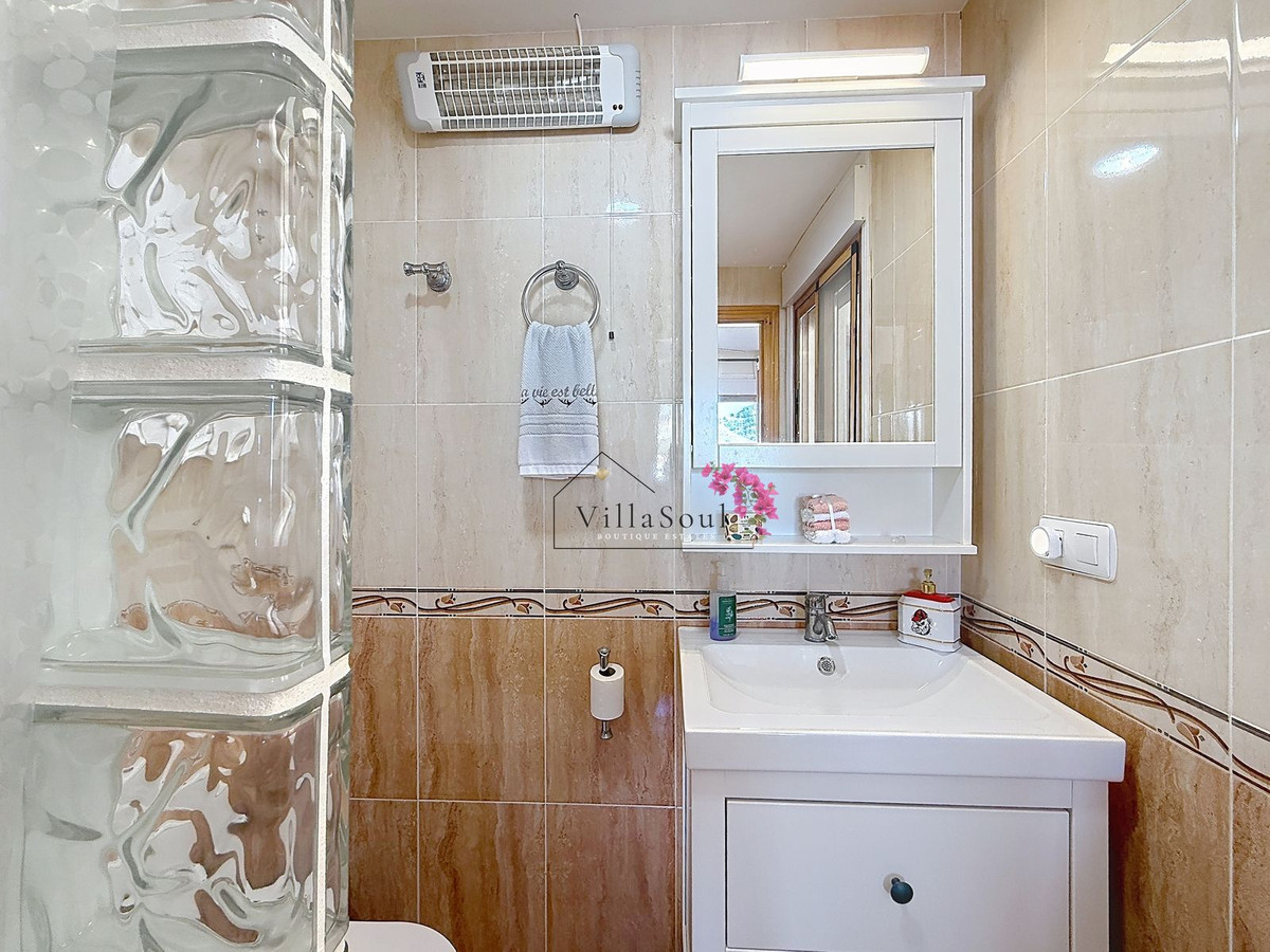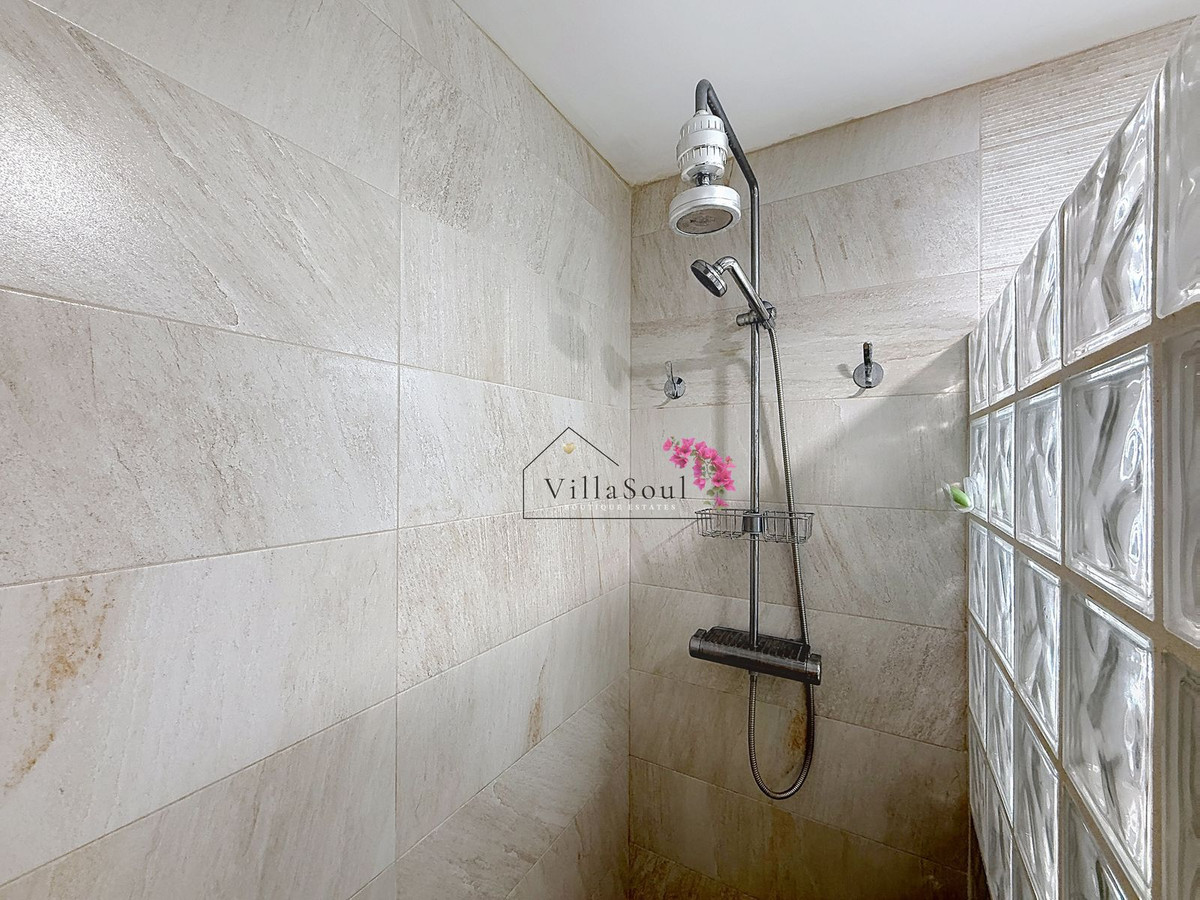 On the first level, two spacious bedrooms each feature their own en-suite bathroom, creating a refined and private sleeping area. One level higher, the main living space unfolds into a bright and elegant environment, with a beautiful open kitchen fitted with Bosch appliances, a guest toilet, and direct access to a terrace with stunning sea views. Light, space and atmosphere come together here in a natural and effortless way.