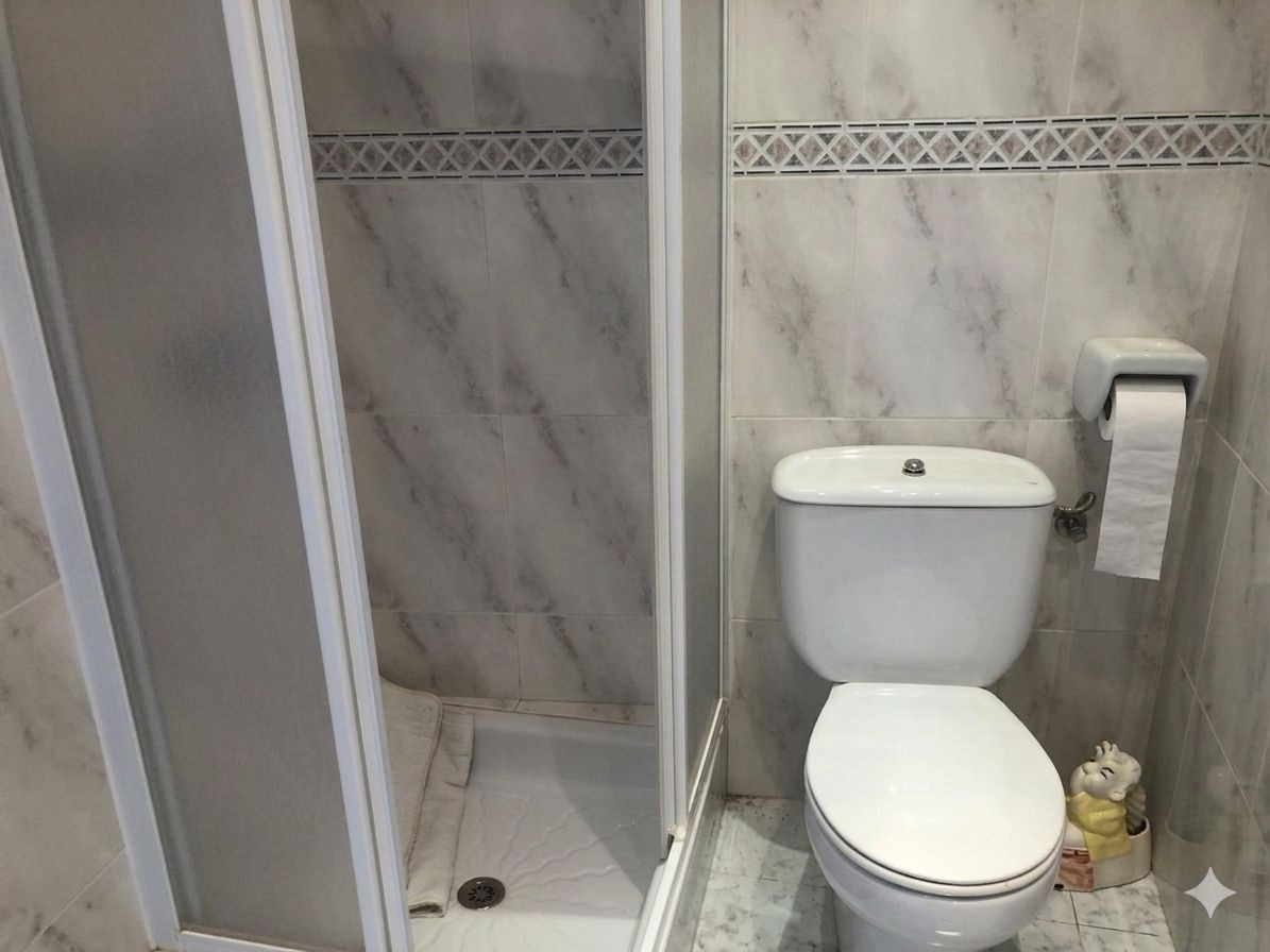 • First Floor (Separate entrance): Upon entering, to the right of the hallway, you are greeted by a bright living-dining room with access to a private terrace. This floor includes a bedroom, a bathroom with a shower, and a spacious eat-in kitchen with a dining table that connects to a covered terrace and a separate laundry area.