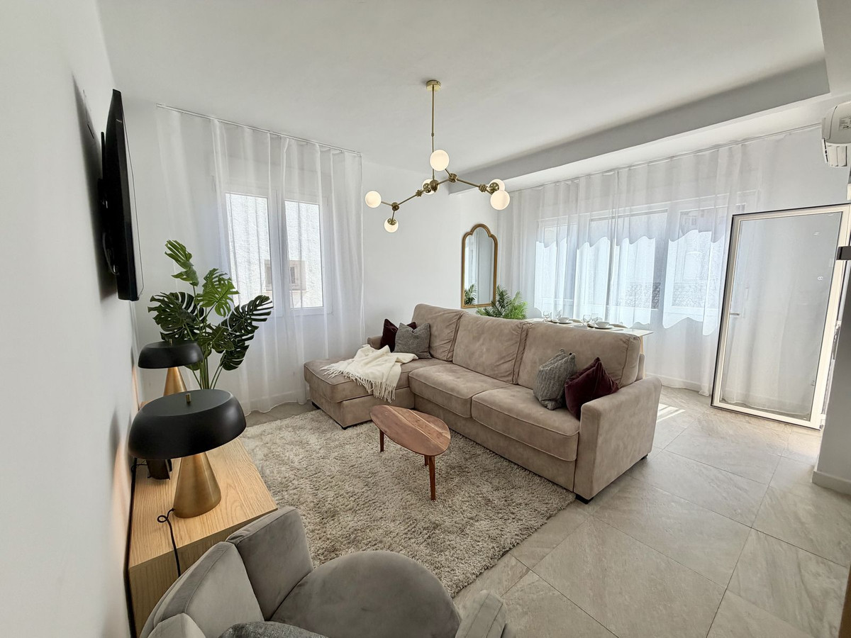 Välkommen hem till din egen oas på tredje våningen i Fuengirola! Här bor du i en ljus och välplanerad tvårumslägenhet utan hiss, med tillgång till en generös gemensam takterrass. Läget är svårslaget, med endast 600 meter till stranden och med cirka fem minuters promenad till både större matbutik och centralstation. Allt du behöver finns inom bekvämt räckhåll.