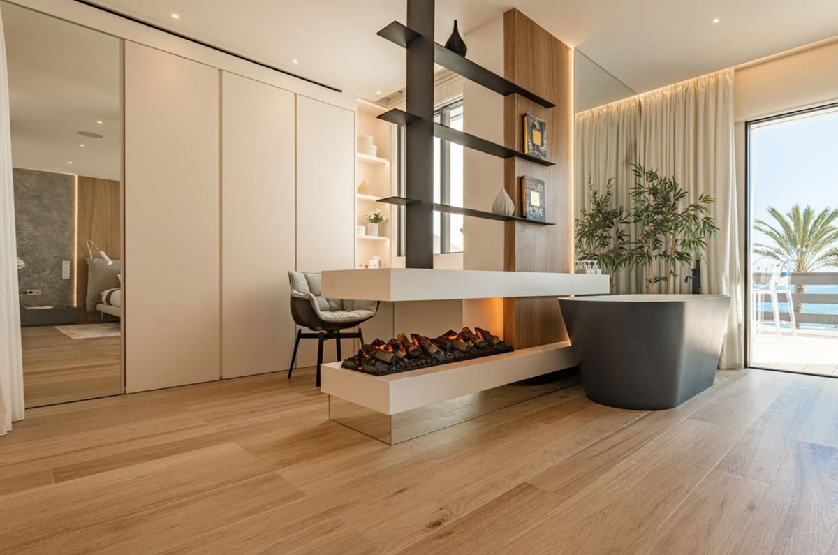 Experience the pinnacle of Mediterranean living in this stunning 222 m² beachfront residence, perfectly positioned on Marbella's legendary Golden Mile. Just a short stroll from the glamour of Puerto Banus, this four-bedroom home has been meticulously reimagined to offer the ultimate in modern sophistication.
