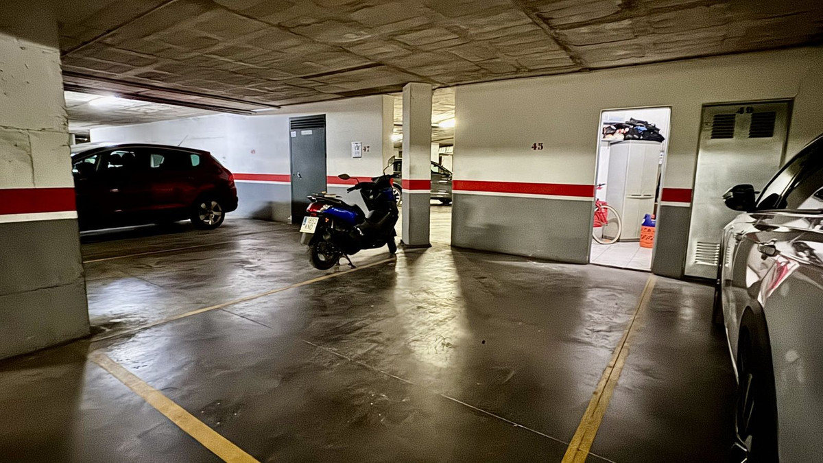 Lägenheten har laminatgolv och inbyggda skåp, samt värme och luftkonditionering. Försäljningspriset inkluderar en parkeringsplats i parkeringsgaraget som ligger under bostadshuset. Det finns även ett förråd i anslutning till parkeringsplatsen. Gemenskapsområdet har en pool och en trädgård.