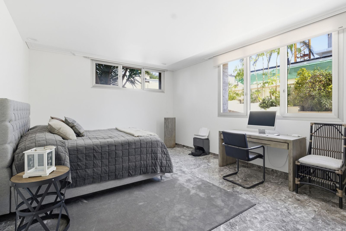 Set on a private gated plot of 665 m², the property offers 442 m² of living space across multiple levels, including six spacious bedrooms and four designer bathrooms.