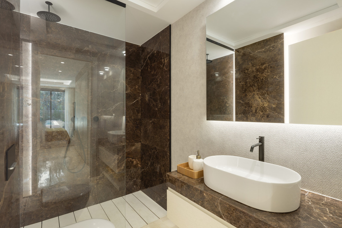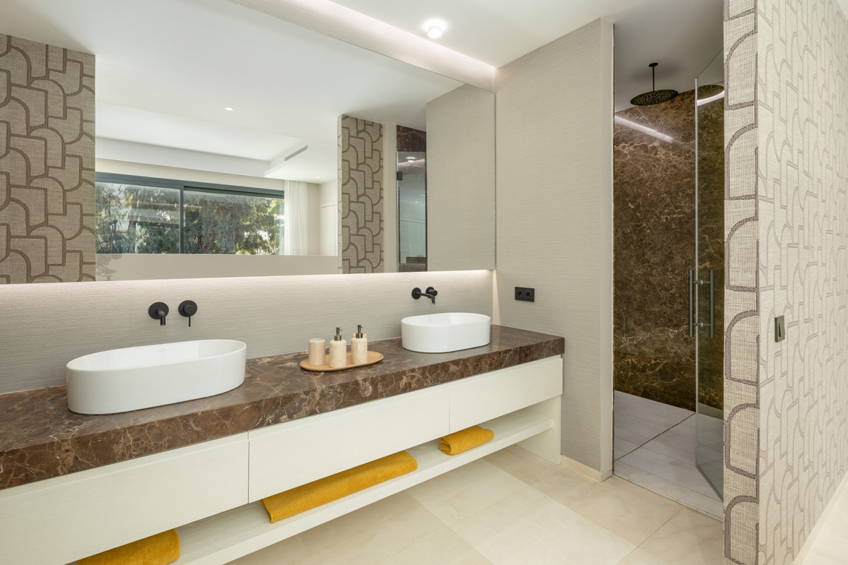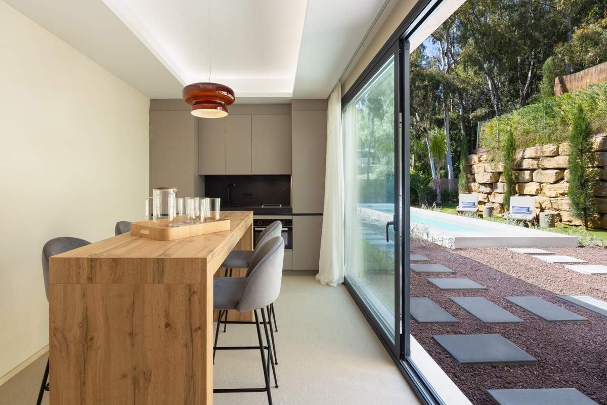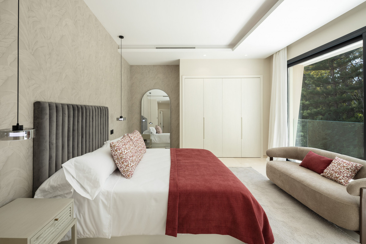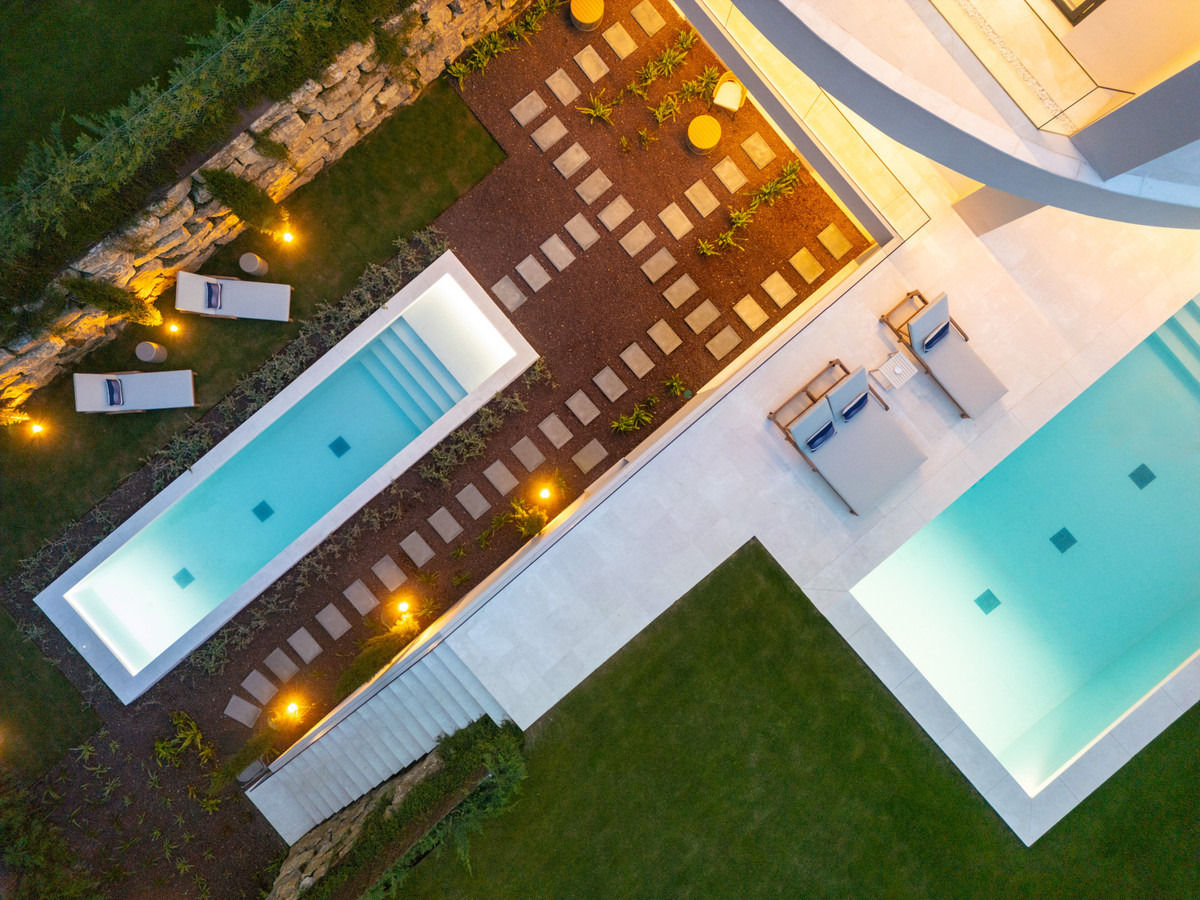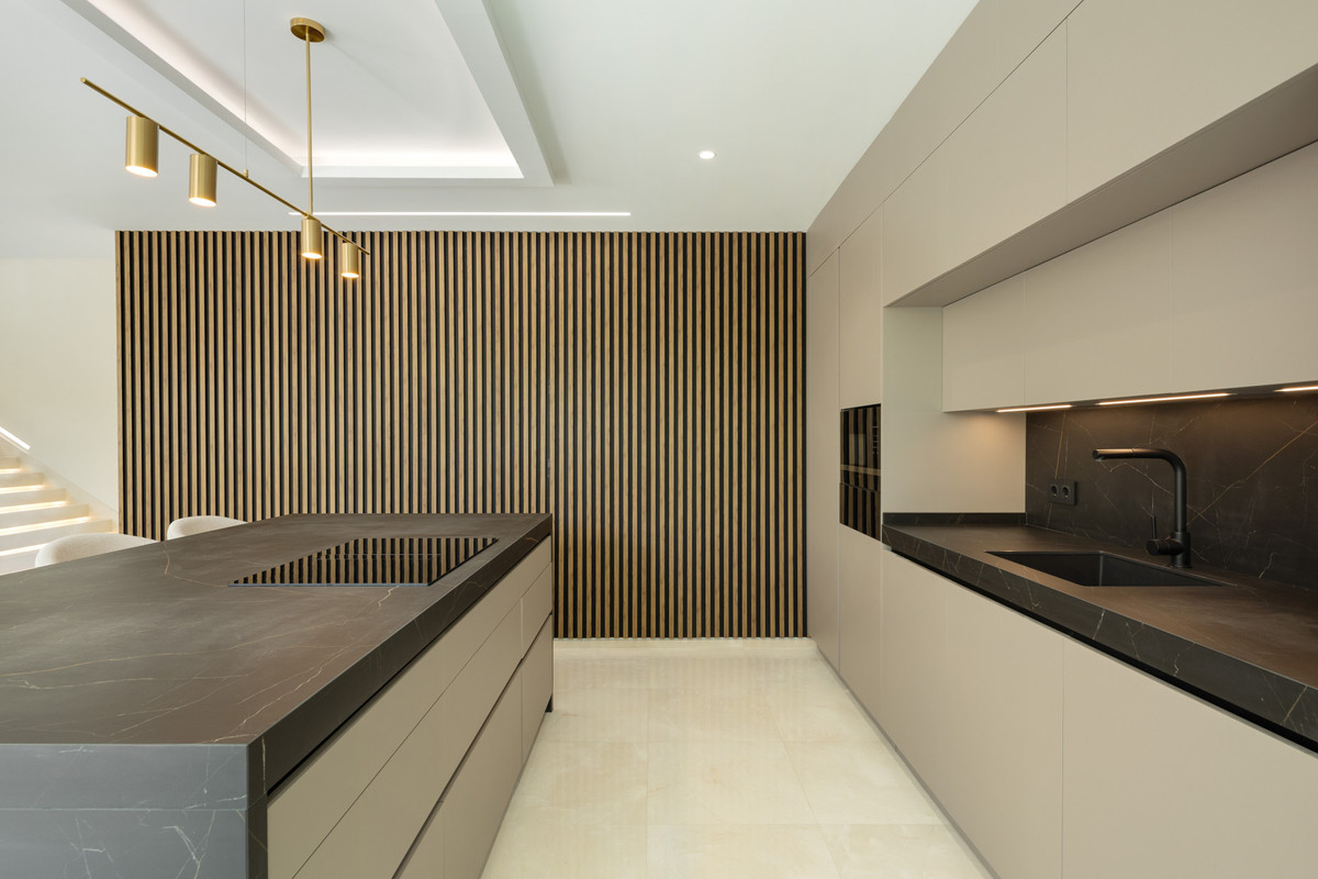 Beläget i den exklusiva enklaven i La Cerquilla, är denna exceptionella helt nya villa till salu en masterclass i modern lyx, som erbjuder fem rymliga sovrum och sju vackert utsedda badrum över fyra noggrant utformade nivåer. En slående dubbelhöjd ingång skapar en omedelbar känsla av storhet, översvämmar hemmet med naturligt ljus och sätter tonen för de eleganta interiörerna bortom. Det huvudsakliga vardagsrummet har en elegant eldstad och strömmar sömlöst till ett öppet plankök, utformat för både vardagsliv och sofistikerad underhållning. Fastigheten förstärks ytterligare av ett toppmodernt hemautomatiseringssystem (domótica) och ett avancerat system för automatisk luftförnyelse, vilket garanterar optimal komfort, effektivitet och luftkvalitet genom hela.