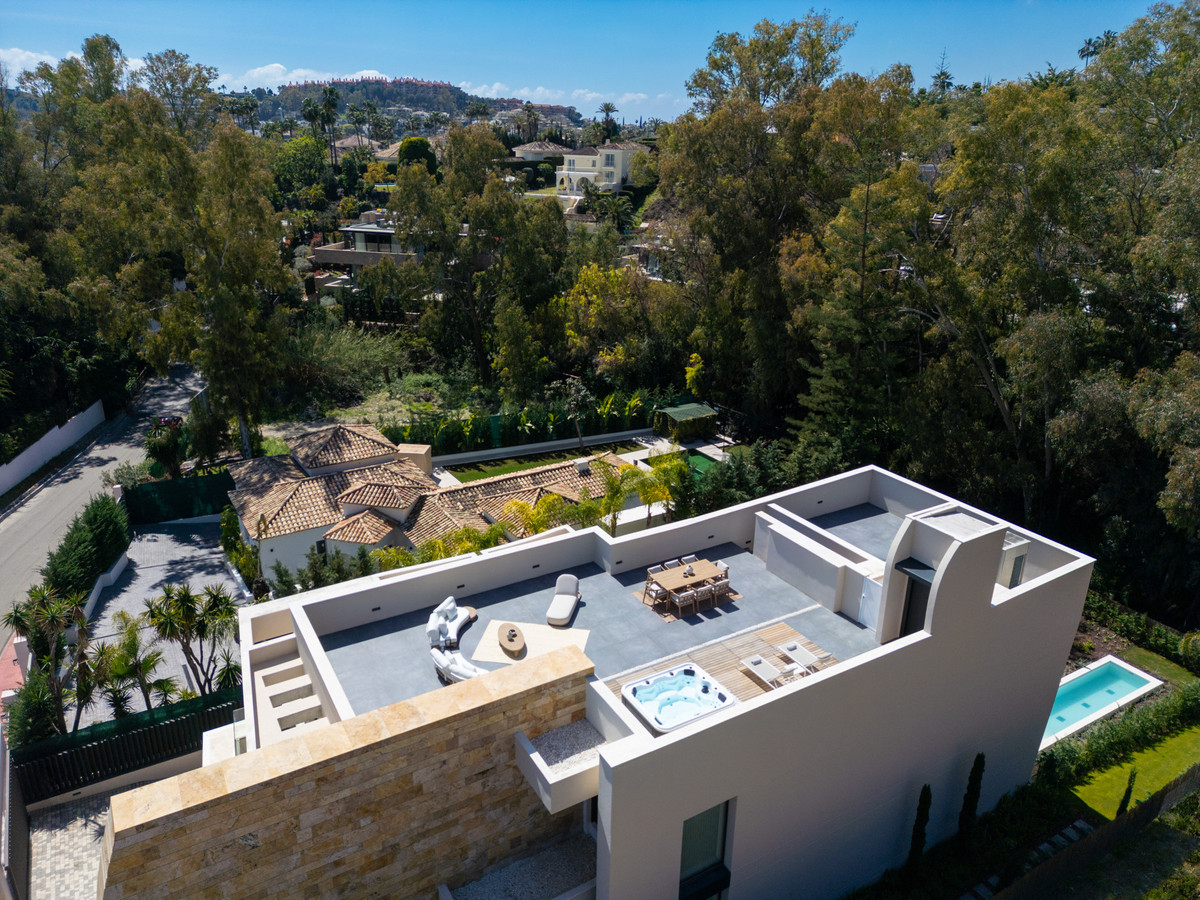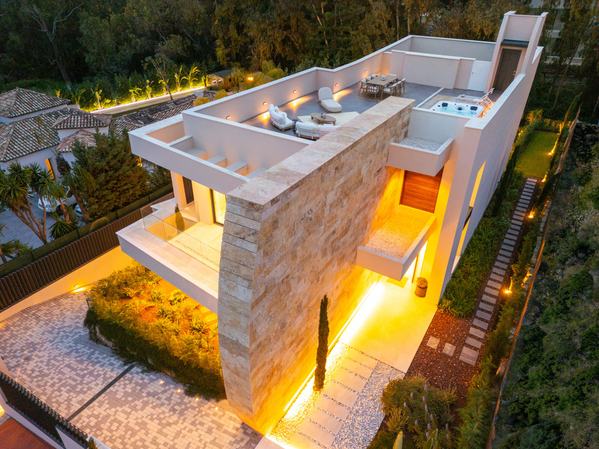 Blanda banbrytande design med lyxiga bekvämligheter, erbjuder denna villa en oöverträffad levande upplevelse i en av Marbellas mest eftertraktade platser. Fastigheten inkluderar också en hiss som ger sömlös tillgång till alla våningar, vilket förbättrar både bekvämlighet och tillgänglighet.