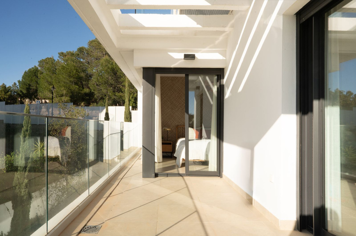 There are three comfortable bedrooms and three bathrooms, which gives a lot of flexibility whether you're using it as a main residence or a second home. Upstairs, the private solarium really completes the property. It's a space where you can fully enjoy the climate here, whether that's relaxing during the day or having dinner in the evening with complete privacy.