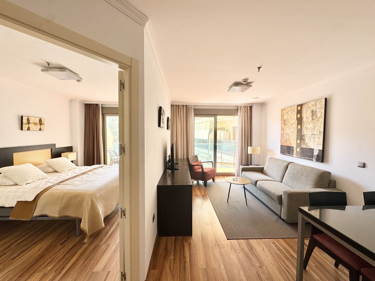 Från vardagsrummet nås den trevliga balkongen i syd/västläge, där du kan njuta av sol större delen av dagen samt vacker utsikt över poolområdet och delvis havsutsikt mellan byggnaderna.