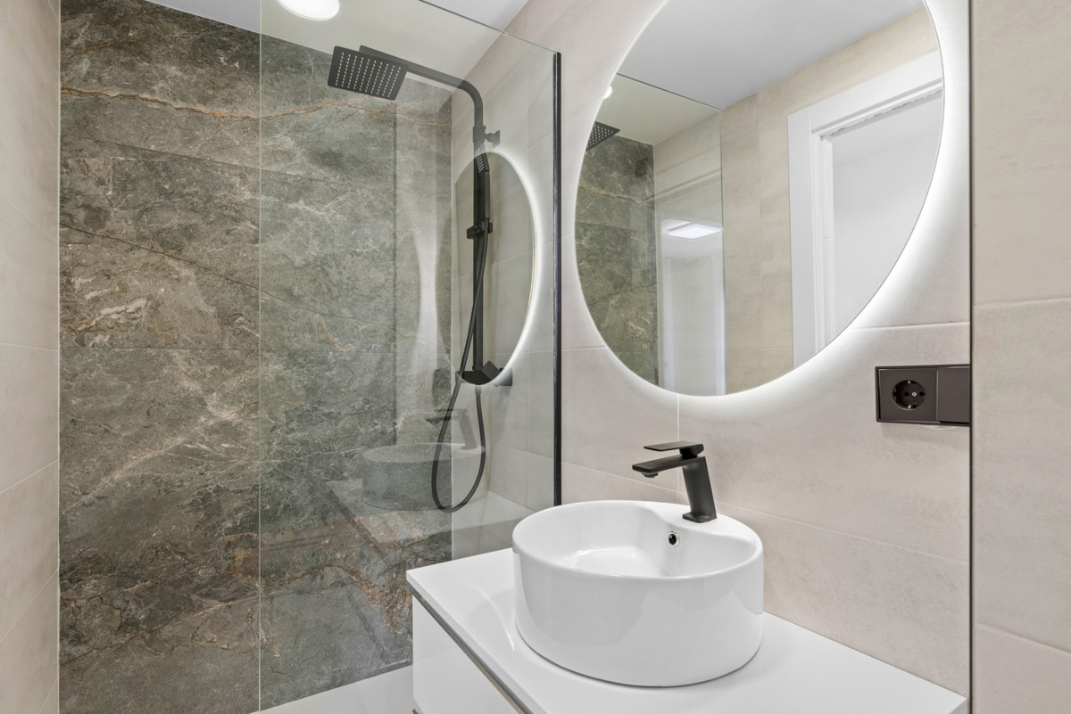 This East Facing, Four Bedroom, Renovated, Semi Detached Villa in Torre de la Horadada is located just a 3 minute walk to the beach, positioned one street behind the sea and promenade which leads you to the marina and a larger stretch of sandy coastline. Torre de la Horadada is a typically Spanish seaside town offering a variety of restaurants and café bars, while Pilar de la Horadada is just a couple of minutes' drive away. Orihuela Costa, La Zenia Boulevard shopping centre, and several golf courses can all be reached in approximately 15 minutes. Recently renovated to a high standard with a unique and stylish design, this impressive 121m2 villa is set over two floors and even enjoys sea views. The property offers a bright open plan living space that flows seamlessly to the exterior, along with a well fitted modern kitchen. A hallway leads to the stairs for the first floor, while the ground floor also features a double bedroom with double sliding glazed doors out to the garden, and a contemporary shower room. On the first floor, there are three further double bedrooms, including a spacious master with dressing area and an en suite shower room featuring a double vanity. Bedroom four benefits from its own private terrace, and there is also an additional modern family shower room. The 45m2 private solarium is laid with artificial grass and includes a brick-built area with sink — ideal for outdoor entertaining. The garden is tiled and partly laid with artificial grass, and offers off road parking, a private swimming pool, outdoor shower, and an extensive covered kitchen/work area. Additional extras include ducted air conditioning, an irrigation system, and a store room. An exceptional, fully renovated villa in a prime coastal location, perfect for enjoying modern Mediterranean living on the Costa Blanca South.
