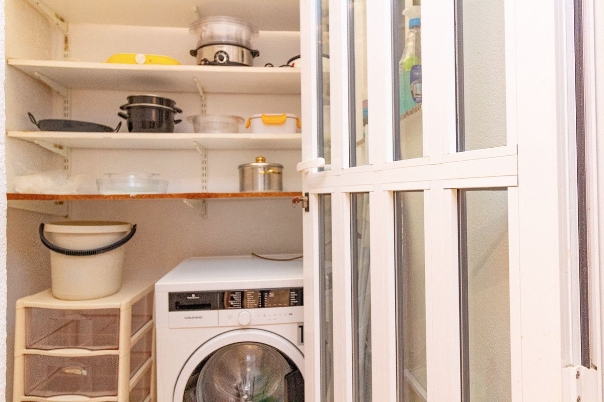 Strategically located town house , set on the border of Playa Flamenca and La Zenia and just a short stroll away from the sandy La Zenia Beach and the highly popular Zenia Boulevard shopping centre. The town house offers 3 double bedrooms , 2 full bathrooms and a handy downstairs WC/cloakroom, lounge/dining room and open plan fully fitted kitchen and breakfast bar with adjoining utility/laundry room. The property also boasts a glazed front porch for winter warmth and relaxing. Outside space offers a low maintenance front terrace on the ground level, first floor bedroom with Juliette balcony and master bedroom on the second floor with balcony terrace. Located on a quiet community with swimming pool for residents. A fantastic location a short walk to both the main commercial areas of both Playa Flamenca and La Zenia, with no need for a car in these bustling coastal areas. Sold as seen, furnished with extras including white goods, air conditioning, ceiling fans, security shutters and grilles.