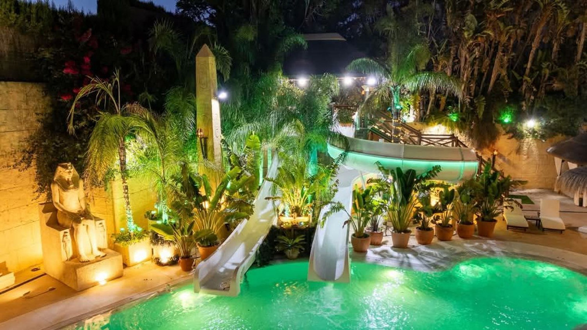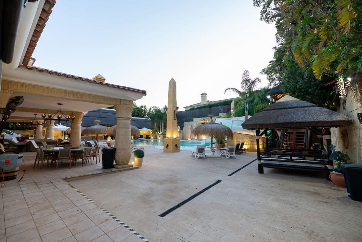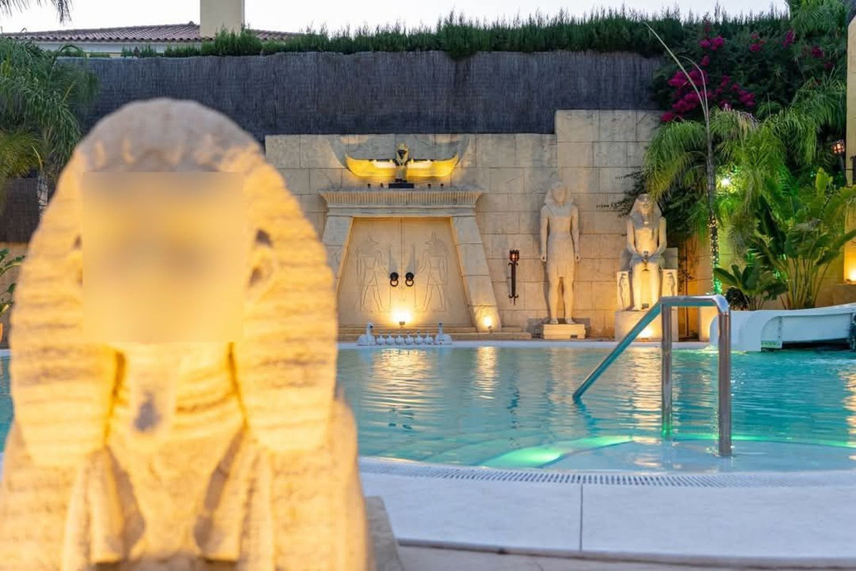 Exteriören bibehåller den arkitektoniska harmonin med en pool med harmonisk design integrerad i en tomt på 3 000 m2. Utrymmen utformade för exklusiva firanden, privata möten och oförglömliga stunder under Sotogrande-himlen.