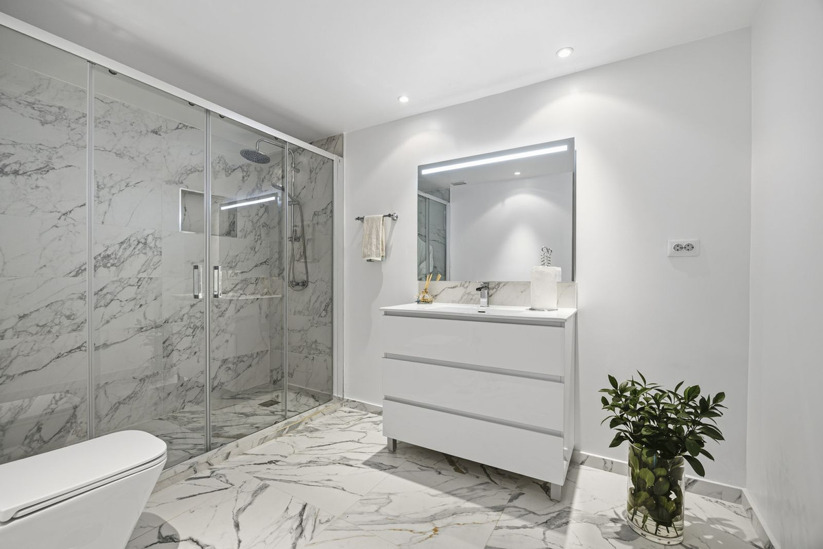 Inside, you'll find two great size bedrooms each with ensuite bathrooms, including one recently refurbished. The light flooded & very spacious living and dining area opens onto a covered terrace with foldable soundproof windows—perfect for enjoying breathtaking sea and Benahavís hill views year-round. Beyond the covered terrace is the open terrace ideal for sunbathing, eating or chilling beneath the stars and lots of space for plants. As the apartment is west-facing position innumeral magical sunsets can be enjoyed here hroughout the year.