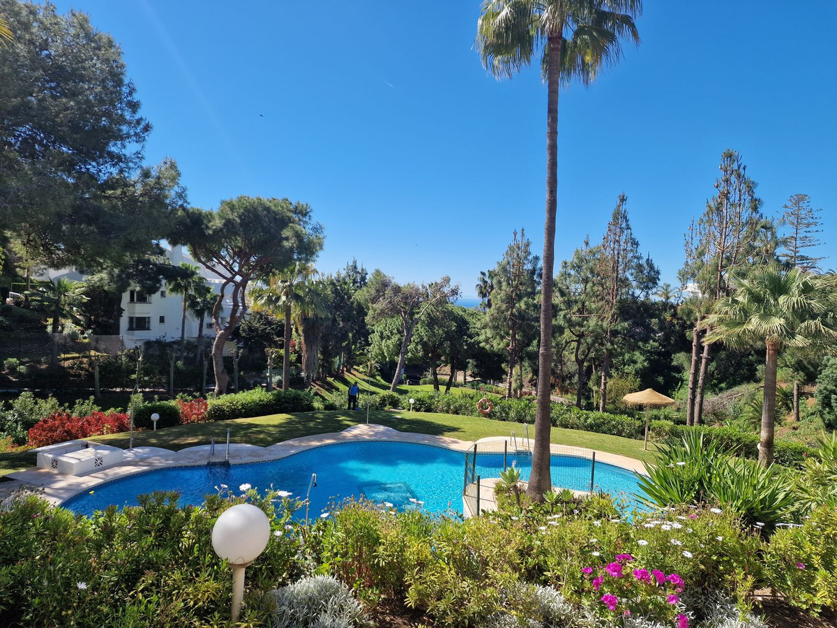 Belägen i en lugn och lummig miljö erbjuder denna vackra lägenhet på bottenvåningen den perfekta tillflyktsorten i första linjen vid golfbanan Calahonda Siesta. Omgiven av grönska och naturens rogivande ljud är det en idyllisk plats för golfälskare och de som söker frid — en sann oas under den medelhavska solen.
