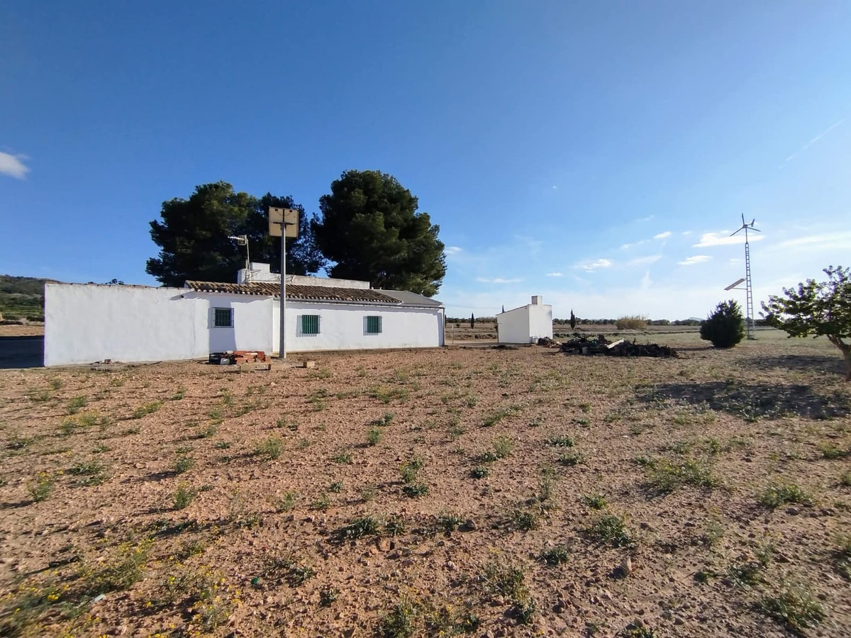 Discover this detached country house located in the serene rural area of Yecla, 9 km from the town. This single-story home spans 100 m² and features 3 bedrooms, a bathroom, a cosy salon complete with a fireplace, a kitchen, and a garage. The house is ready to move in, and could be expanded.This property is off-grid, equipped with solar panels, a wind turbine, and batteries, ensuring sustainable, independent living. The property features expansive land of 55,000 m² (split in 3 parcels), with its own vineyard in full production, it's equipped with irrigation water, allowing extensive agriculture or landscaping projects. Additionally, there is a deposit that can be transformed into a swimming pool.Enjoy the privacy and tranquility, with no neighbours close, yet with a comfortable, asphalted access. Surrounded by trees, the house offers ample shade and a tranquil atmosphere, making it an ideal retreat. This villa is available at a great price, providing an excellent opportunity for further development in form of new constructions or touristic or agricultural business. Discover the numerous possibilities!About the area: Yecla is renowned for its wine production, historical landmarks, and vibrant local culture. The surrounding natural landscapes provide opportunities for outdoor activities, while the town itself offers all necessary services, including schools, shops, and restaurants. This property combines the tranquility of countryside living with easy access to modern amenities.About us: We have a large portfolio of properties in the Costa Blanca and Costa Calida areas, specialising in country properties, villas, fincas, building plots and design and build options in the Alicante and Murcia regions with a particular emphasis on Elda, Monovar, Pinoso, Sax, Villena, Aspe, Fortuna, Albacete and many more surrounding areas. We have been established since 2004 and have decades of experience between the team which we bring to bear to help you find and secure your new dream home. We help you every step of the way to make sure your purchase in Spain is safe and hassle free. We are not here to sell you a property, we are here to help you realise your dream and find what is right for you. With us you are in the safest hands. Contact us now to have a no obligation chat about how you too can realise your dreams.
