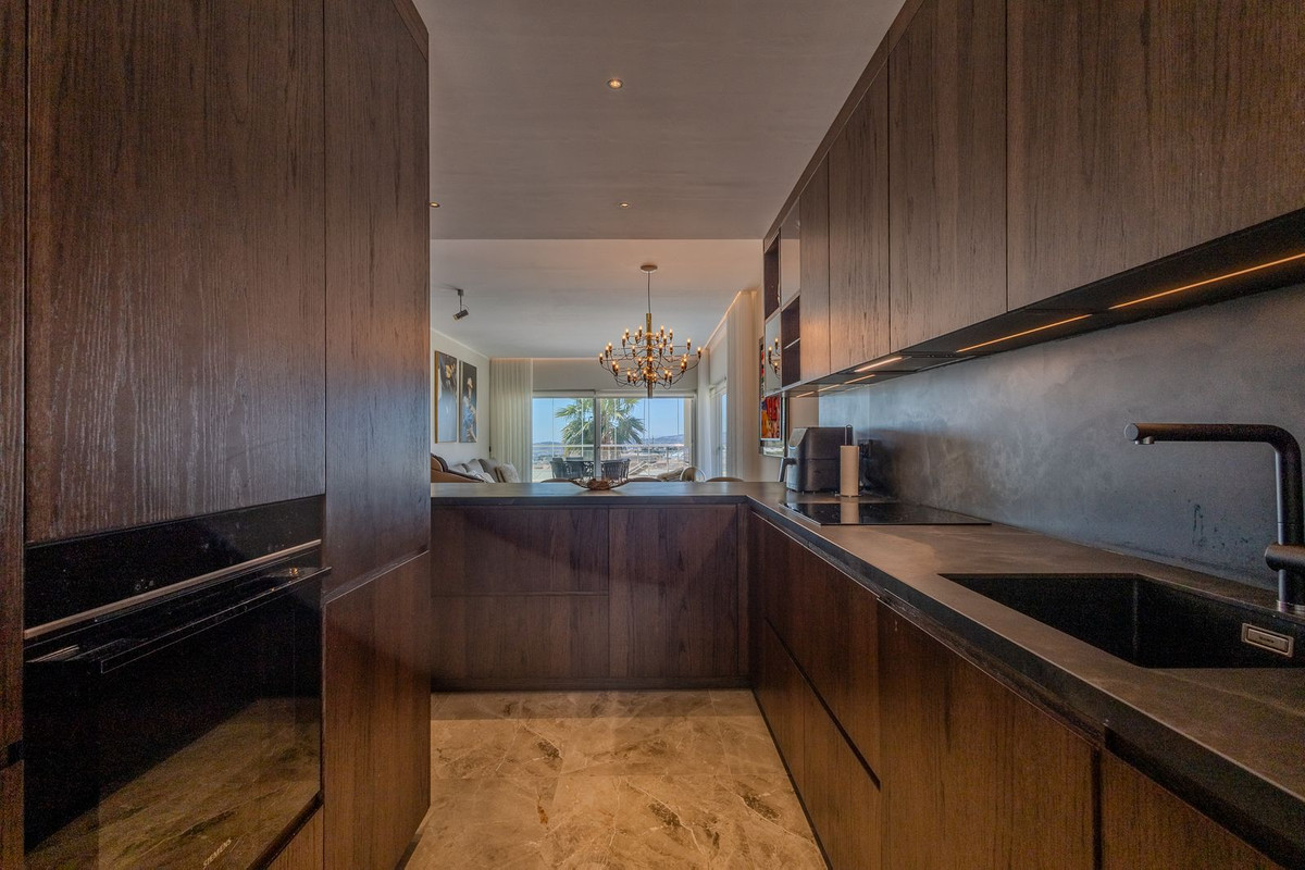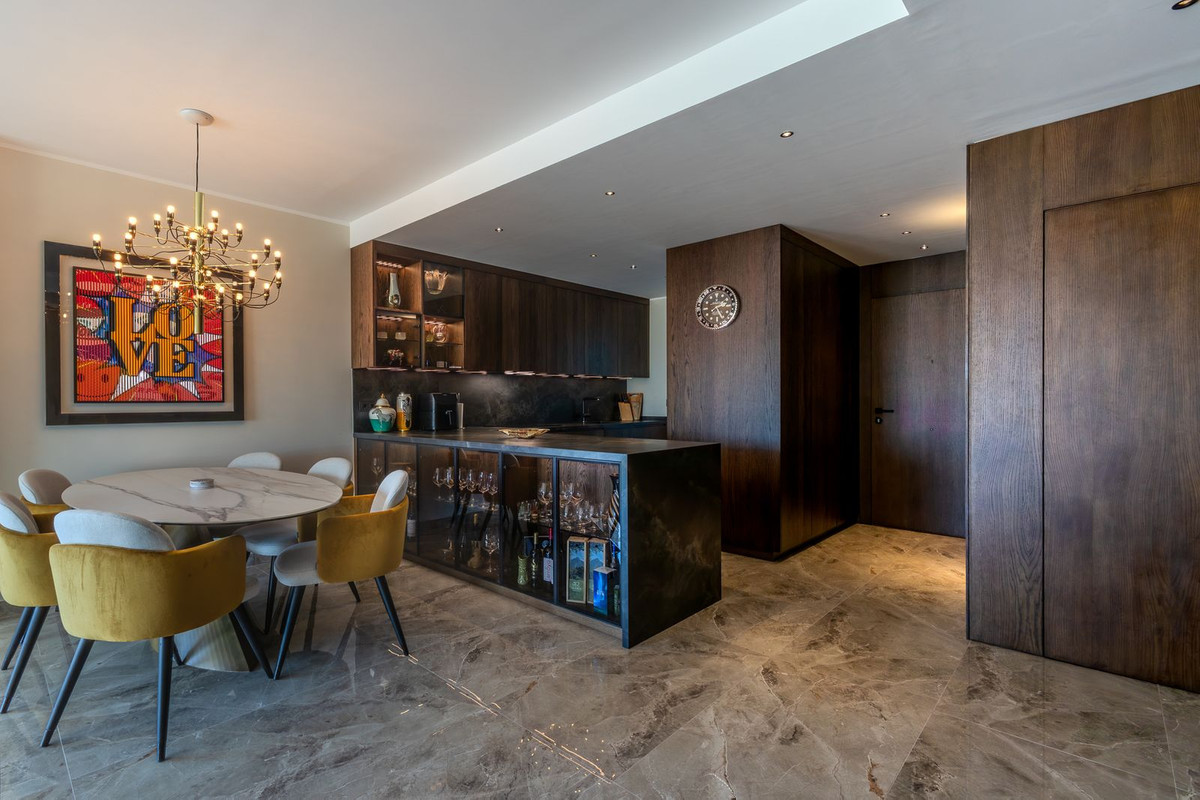 Det rymliga vardagsrummet har direkt utgång till en stor täckt terrass, där en del har glasats in för att skapa ett extra sällskapsutrymme – perfekt för att njuta av den fantastiska utsikten över havet, bergen och Fuengirolas hamn året runt.