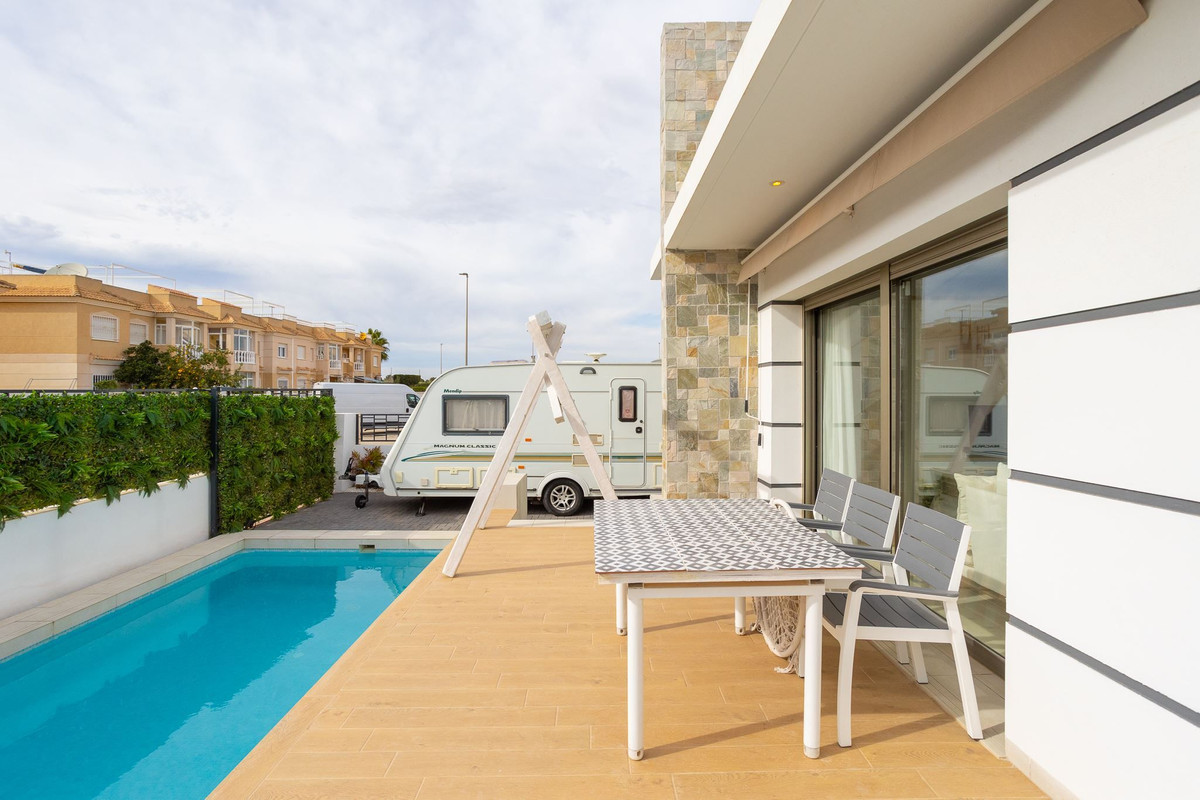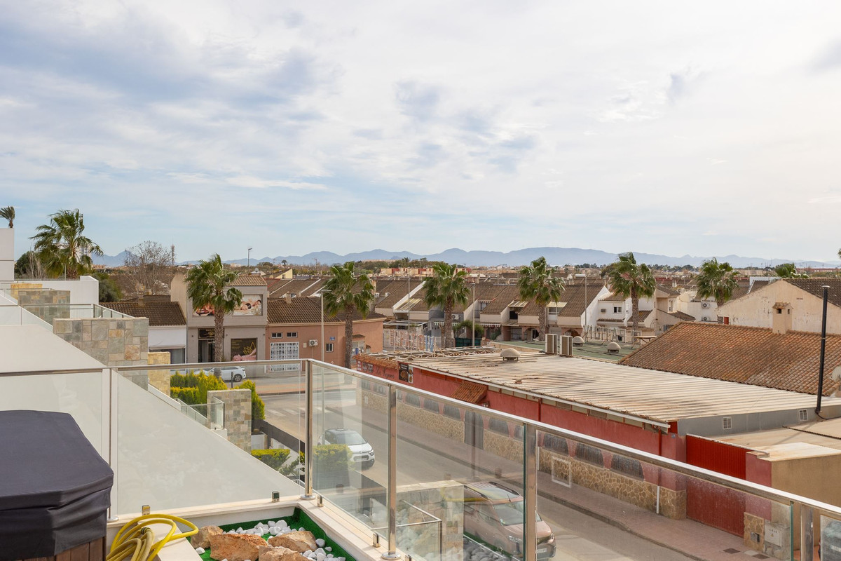Varmt välkommen till detta moderna boende beläget i det attraktiva området Los Alcázares på Costa Calida. Denna villa har fyra sovrum, tre badrum, vardagsrum och kök i en öppen planlösning, en terrass och en takterrass. På tomten finns den privata poolen i trevligt läge. Detta är ett stilrent boende som du gärna kallar ditt hem i Spanien!