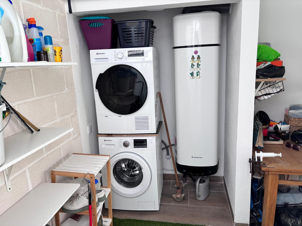 Outside, the villa continues to impress. The private plot features convenient off-road parking with a carport, along with a useful storeroom and a separate utility/washing room, ensuring practicality without compromising on style. The outdoor space offers excellent potential, with ample room to create your own private swimming pool—perfect for making the most of the sunny climate.
