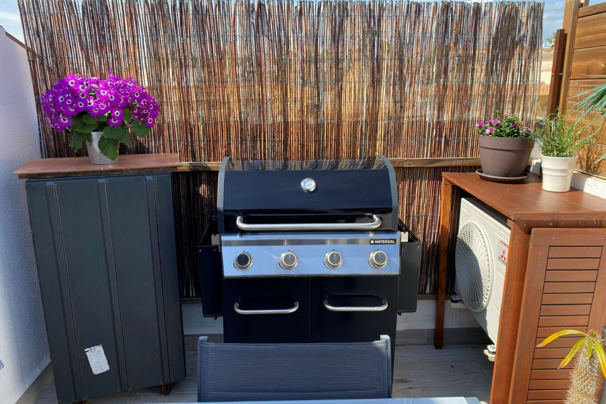 One of the standout features of this property is its outdoor living space. The private 21 m² solarium offers open views and is perfect for enjoying the Mediterranean climate, whether sunbathing, entertaining guests, or dining al fresco. In addition, the property includes an 8m² storage room that has been cleverly converted into a summer kitchen, as well as an extra 3m² storage area. Every part of the home has been thoughtfully updated, making it completely move-in ready.
