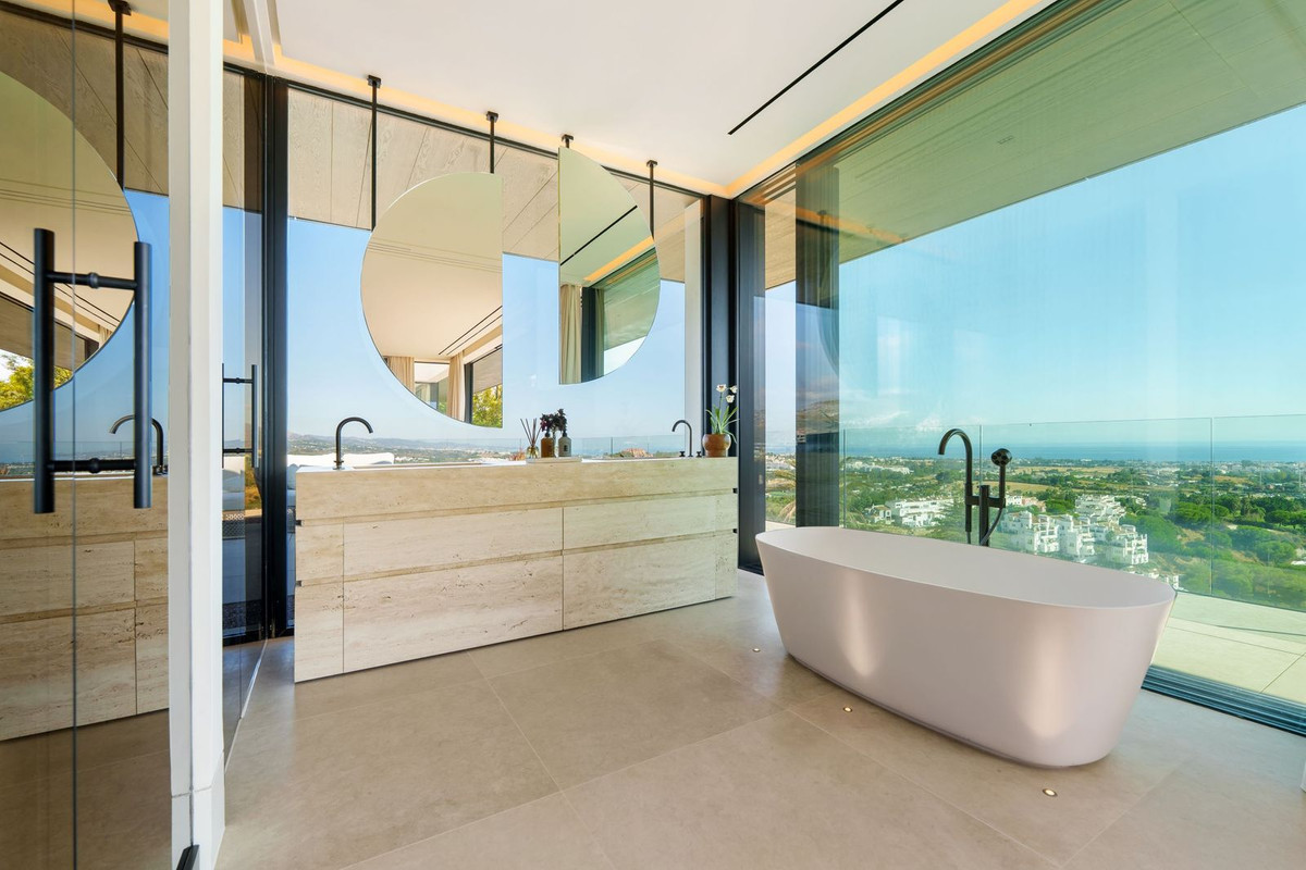 Going down to the lower level you´ll have almost 800 m2 of luxurious space that also offers views from its large windows. This area includes several lounges for entertainment or relaxing, playroom, cinema room and a gym and indoor spa with pool and jacuzzi. Furthermore there´s a home office, garage for 8 cars and 3 bedrooms en-suite, one of them with it´s own entrance and kitchenette making it suitable for staff.