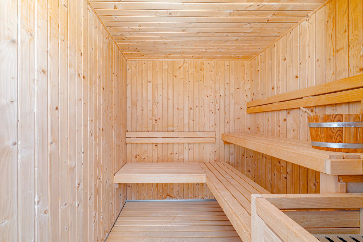 - Communal rooftop terrace with 8x3m swimming pool, outdoor showers, BBQ area, bar, relaxation zone with sunbeds and lounge set, outdoor gym, and sauna