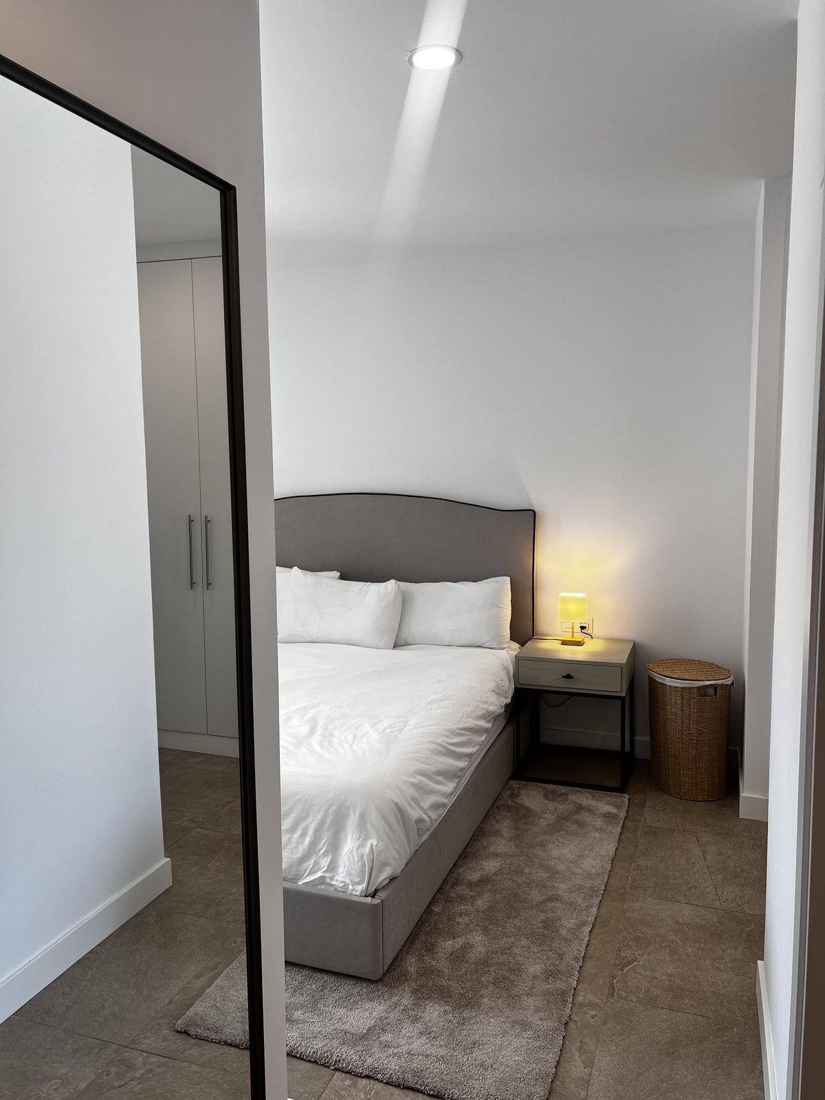Inside, the apartment features a fully fitted modern kitchen, double‑glazed windows, fitted wardrobes, WiFi, electric blinds and efficient air conditioning. The master bedroom includes an en‑suite bathroom, while the additional bedrooms offer flexibility for guests or a home office. Everything feels fresh, contemporary and ready to enjoy.