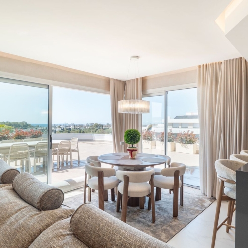 Spacious apartment in a fantastic location in the heart of San Pedro de Alcántara, situated on a charming pedestrian street next to the church square. This bright, corner apartment features three bedrooms and two bathrooms. The master bedroom has an en-suite bathroom. All bedrooms have small balconies. The kitchen is also spacious and includes an exterior laundry area. The living/dining room opens onto a covered terrace with pleasant views of a quiet pedestrian street. In excellent condition and ready to move into. The building has an elevator. A parking space in the same building is included.