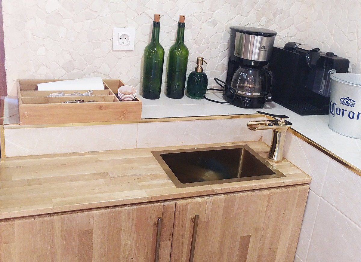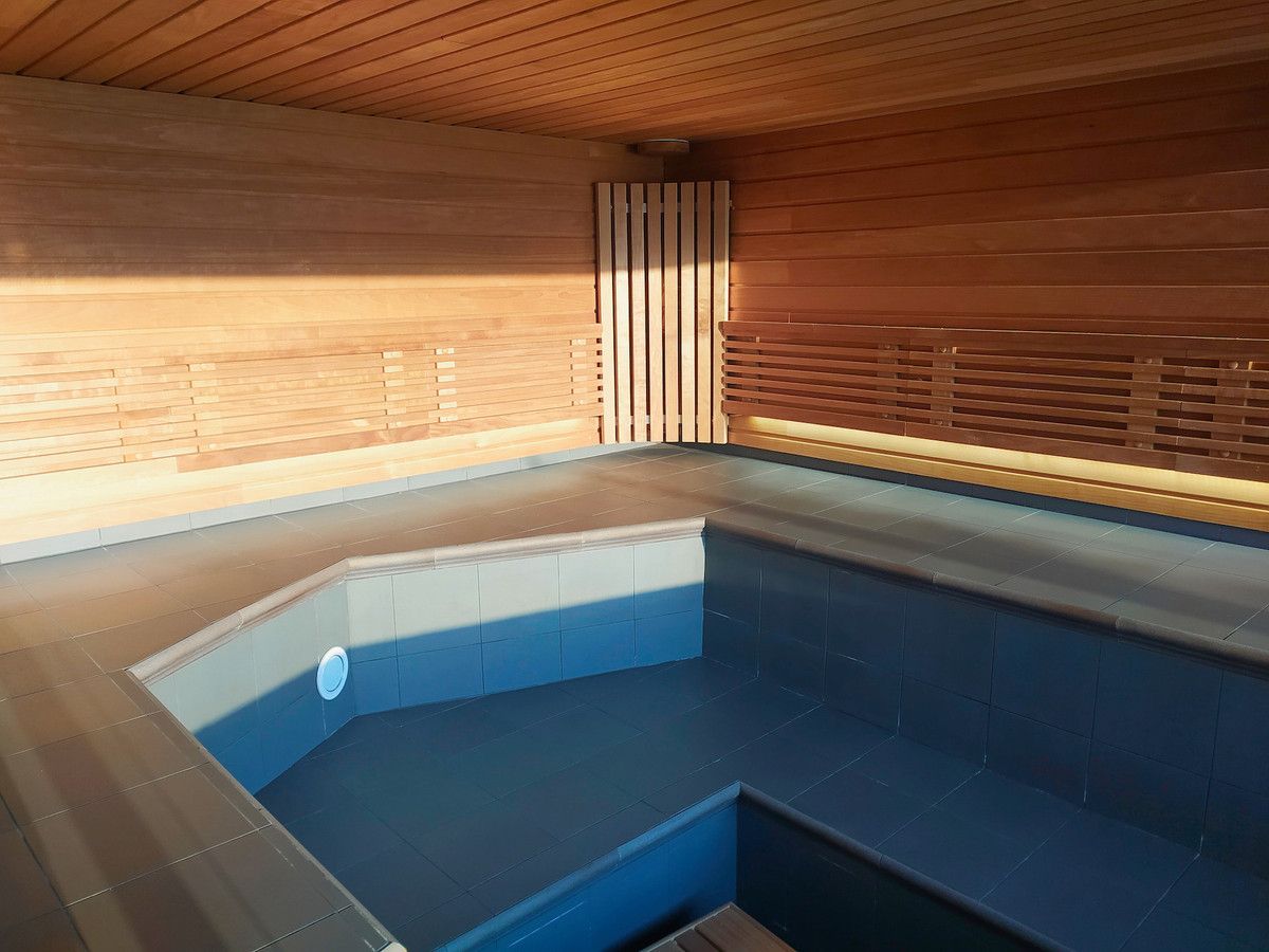 Villans privata spaavdelning ligger direkt mot stora trädgården under villan. Här finns en rymlig bastu med enastående utsikt, dusch, ett mindre kök med kylskåp samt toalett – allt utformat för att skapa en exklusiv spa-känsla i hemmet. Utanför bastun hittar du en inbjudande jacuzzi där du kan koppla av och samtidigt njuta av fina stjärnklara kvällar. Den stora uteplatsen ger dessutom gott om utrymme för både lugna kvällar och festliga sammankomster.