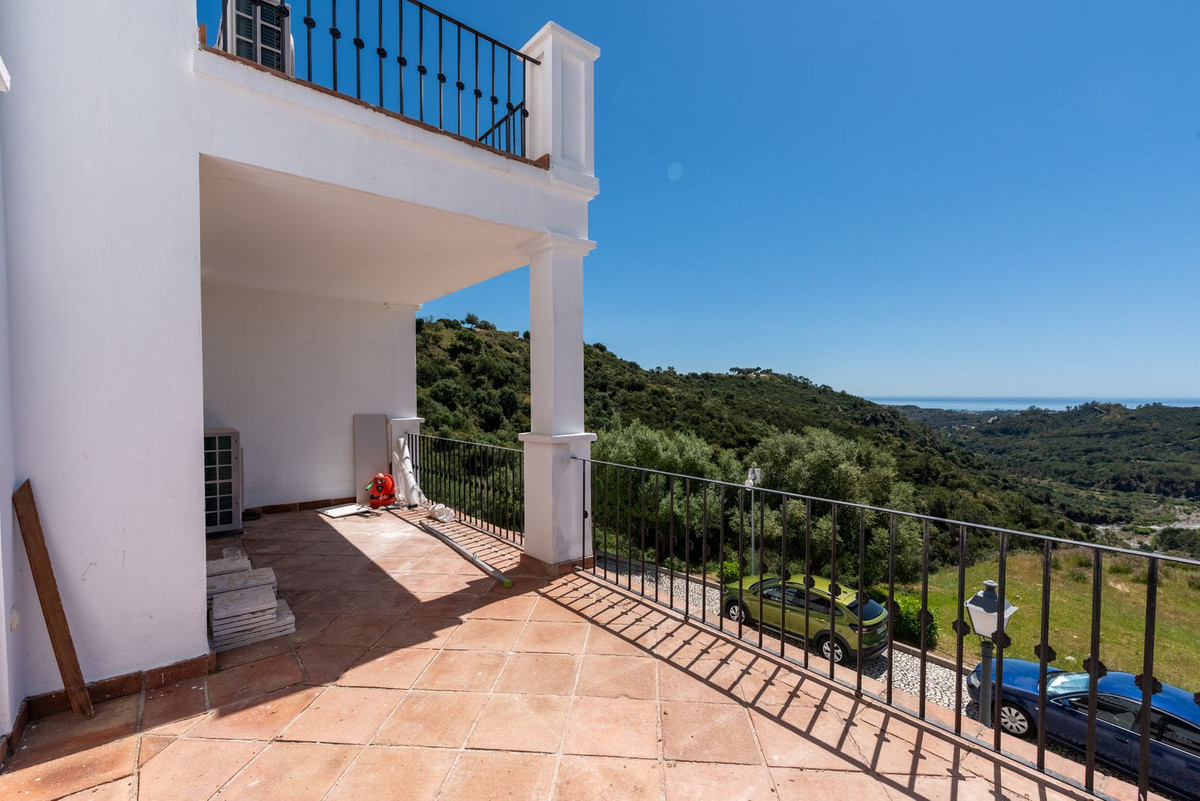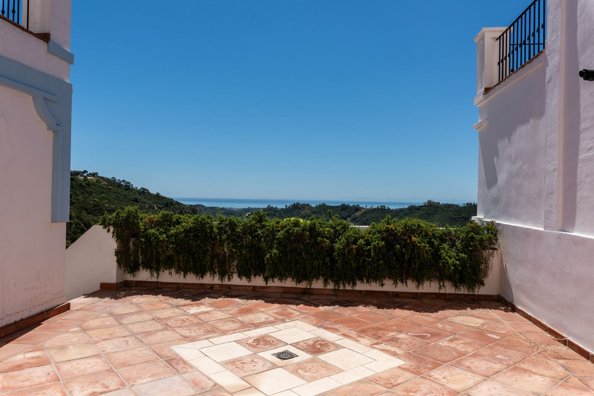 Located in the secure urbanisation of Monte Mayor in Benahavís, this semi-detached house currently undergoing renovation offers a privileged lifestyle in the heart of the hills, with a south-facing orientation and stunning 180° panoramic sea views. With a built area of 306 sqm, complemented by 77 sqm of terraces and a private garden of 37 sqm, the property will be delivered fully renovated in June 2026 with modern, high-quality finishes.