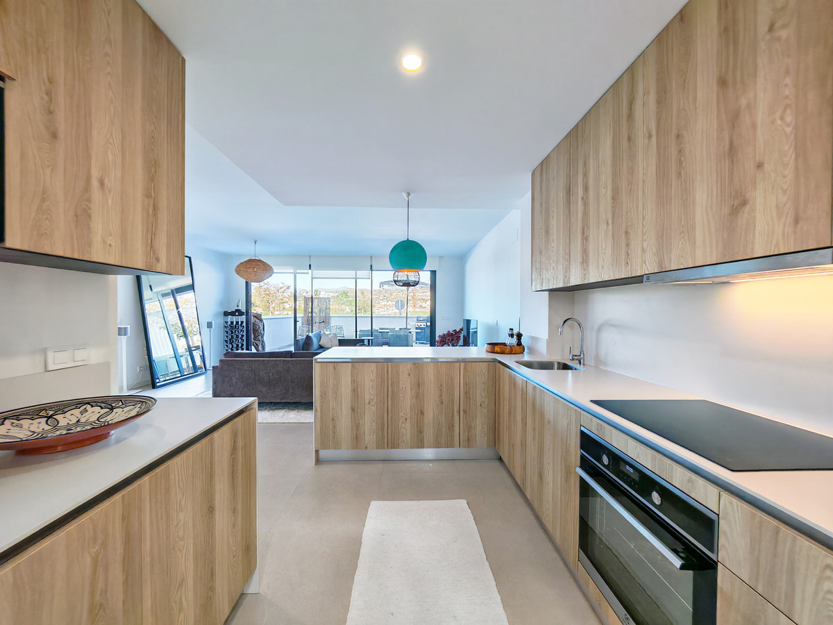 Semi Detached Villa for sale in , Estepona with 3 bedrooms, 2 bathrooms, 1 on suite bathroom, 1 toilet and with orientation south/west, with communal swimming pool, private garage (1 parking spaces) and private garden. Regarding property dimensions, it has 123.65 m² built, 206.84 m² plot, 101.45 m² interior and 44 m² terrace. Has the following facilities transport near, air conditioning, fully fitted kitchen, guest room, security entrance, double glazing, video entrance, brand new, guest toilet, private terrace, living room, country view, mountain view, underfloor heating (throughout), security shutters, covered terrace, electric blinds, fitted wardrobes, garden view, close to children playground, close to golf, uncovered terrace, glass doors, open plan kitchen, balcony, optional furniture, ceiling cooling system, close to shops, close to schools, inside golf resort and pets allowed.