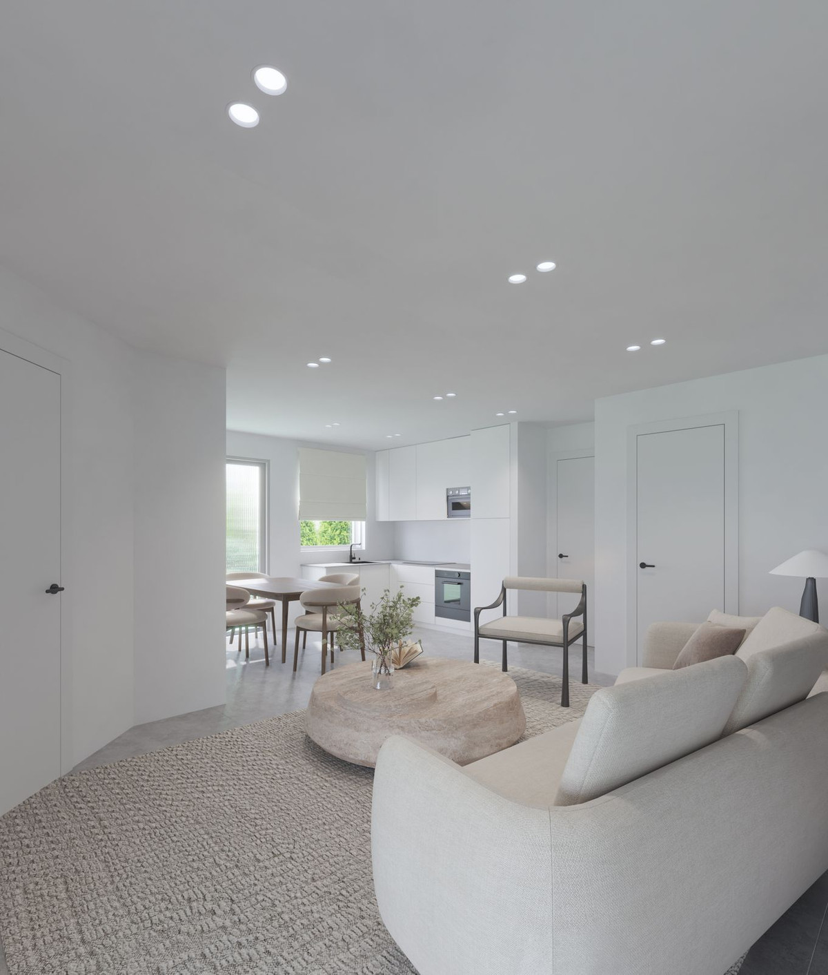 The kitchen is a space that will captivate you at first sight: high-end cabinetry, a porcelain countertop, and complete, state-of-the-art appliances—induction cooktop with integrated extractor fan, oven, microwave, dishwasher, and fridge-freezer. Everything is designed to make everyday life easier.
