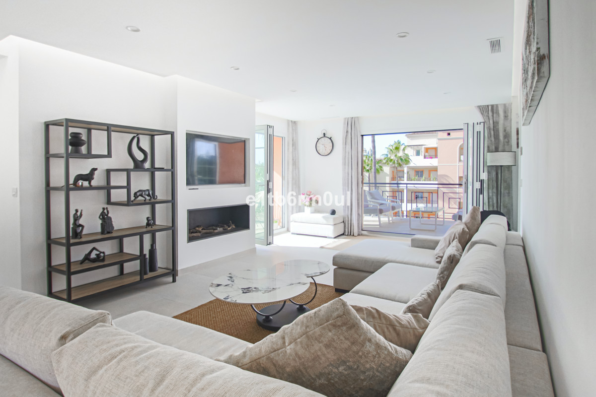 Completely refurbished two-bedroom and two-bathroom apartment, located in the sought-after Urb. River Garden, in Nueva Andalucia, popular with golfers as it is in the heart of the Costa del Sol's golf valley. A small, consolidated development with mature, well-looked-after gardens and a communal pool. Easy access to Puerto Banus and Marbella. The apartment was completely refurbished in 2025, presenting a modern but homely aesthetic. The open-plan kitchen, dining, and living room is spacious and light, leading out onto the large covered terrace overlooking the pool, where there is plenty of room to relax or dine alfresco. The master bedroom is ensuite, and the guest bedroom has a separate bathroom. The property also has an underground car parking space and a storage room.