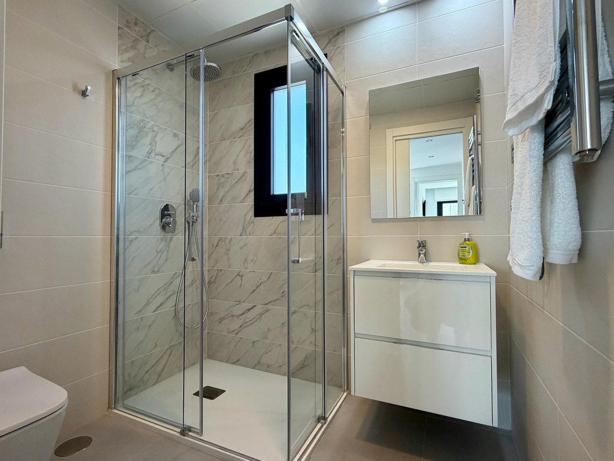 It offers a modern design with spacious interiors, featuring two elegant bedrooms, one of them with an en-suite bathroom and direct access to a private terrace, a bright living-dining room and a contemporary open-plan kitchen. The impressive 40 m² main terrace is the perfect place to relax while enjoying spectacular sea and mountain views.