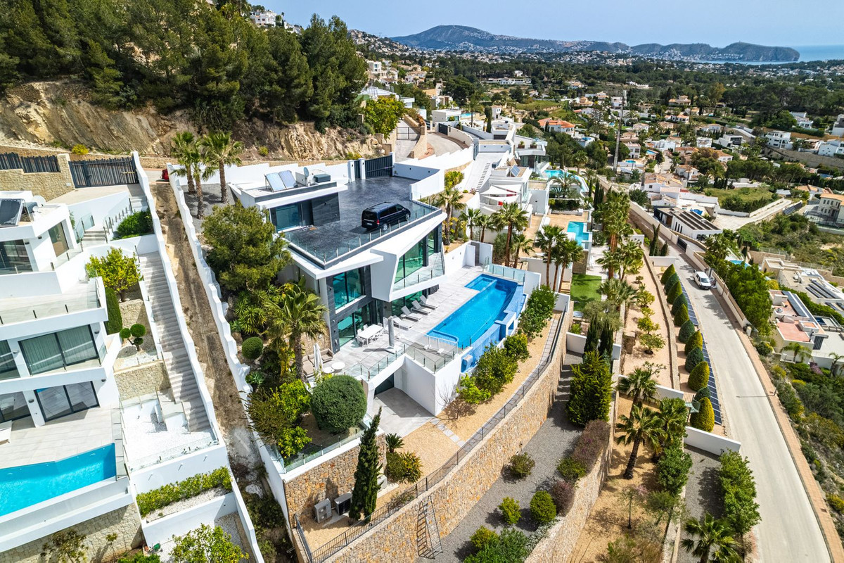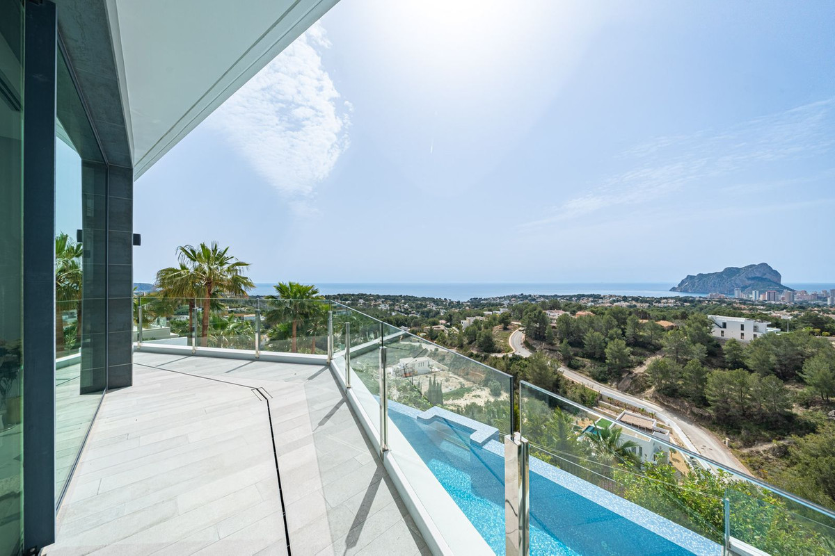 The property is situated on a prime plot, offering spectacular, open views of the Mediterranean Sea and the impressive Peñón de Ifach. To the left, the eye is drawn across the bay and the mountains of Moraira; to the right, the mountains of Altea and beyond. Its perfect southern exposure delivers up to 12 hours of sunshine per day, while the location guarantees peace, complete privacy, and the opportunity to enjoy every day on the Costa Blanca. At the same time, you're only minutes away from the region's best restaurants, beautiful beaches and coves, as well as numerous other attractions.