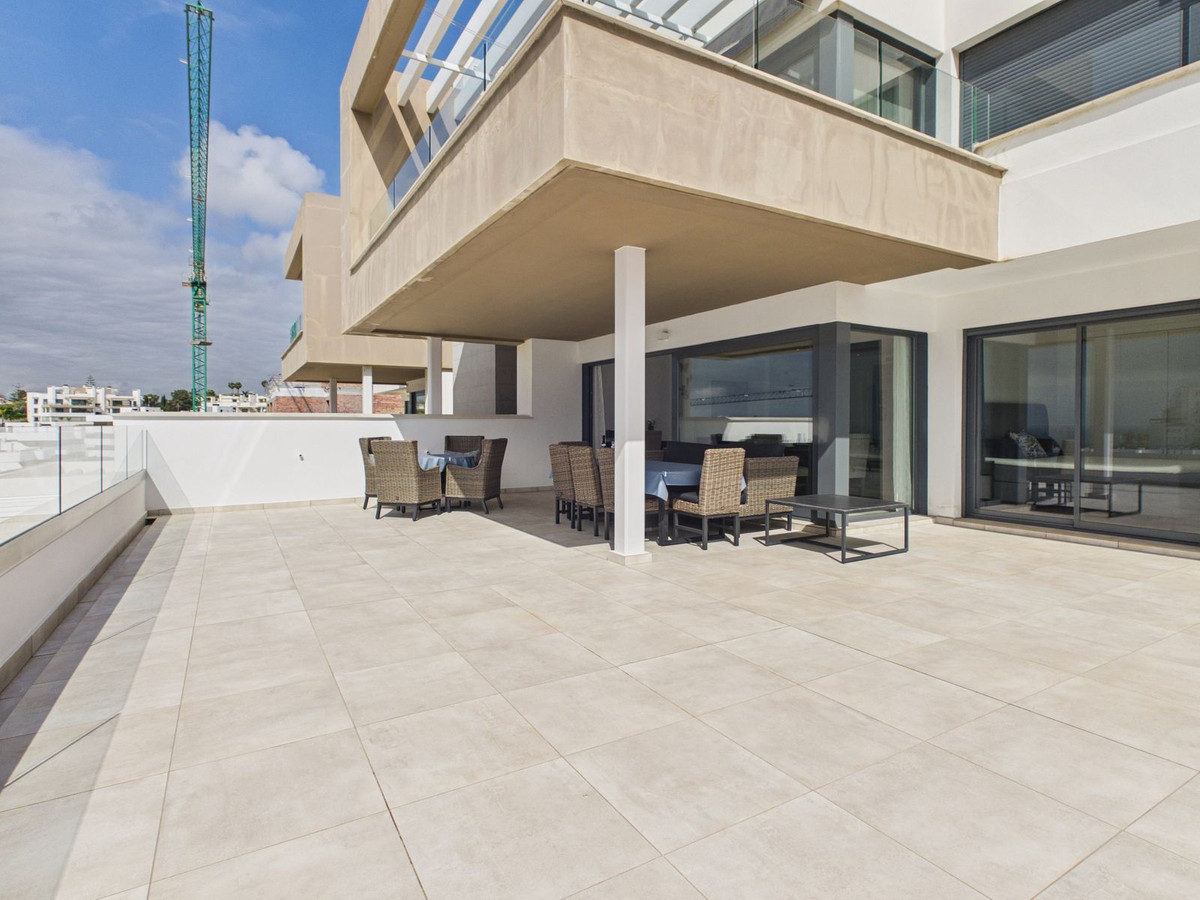 The generous terrace is ideal for both sunbathing and entertaining, with covered areas providing shade and comfort throughout the day. Completed just five years ago, the apartment showcases high-quality finishes and contemporary design, including a stylish open-plan kitchen that perfectly balances elegance and functionality.