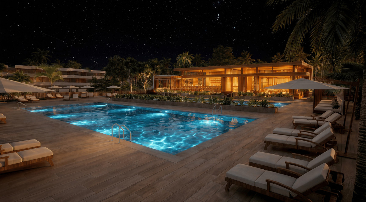 - 365 Dagar av Välmående: Bostadsområdet har två huvudpooler. En designer utomhuspool för sommarmånaderna och en toppmodern uppvärmd pool som möjliggör vattenavslappning när som helst på året.