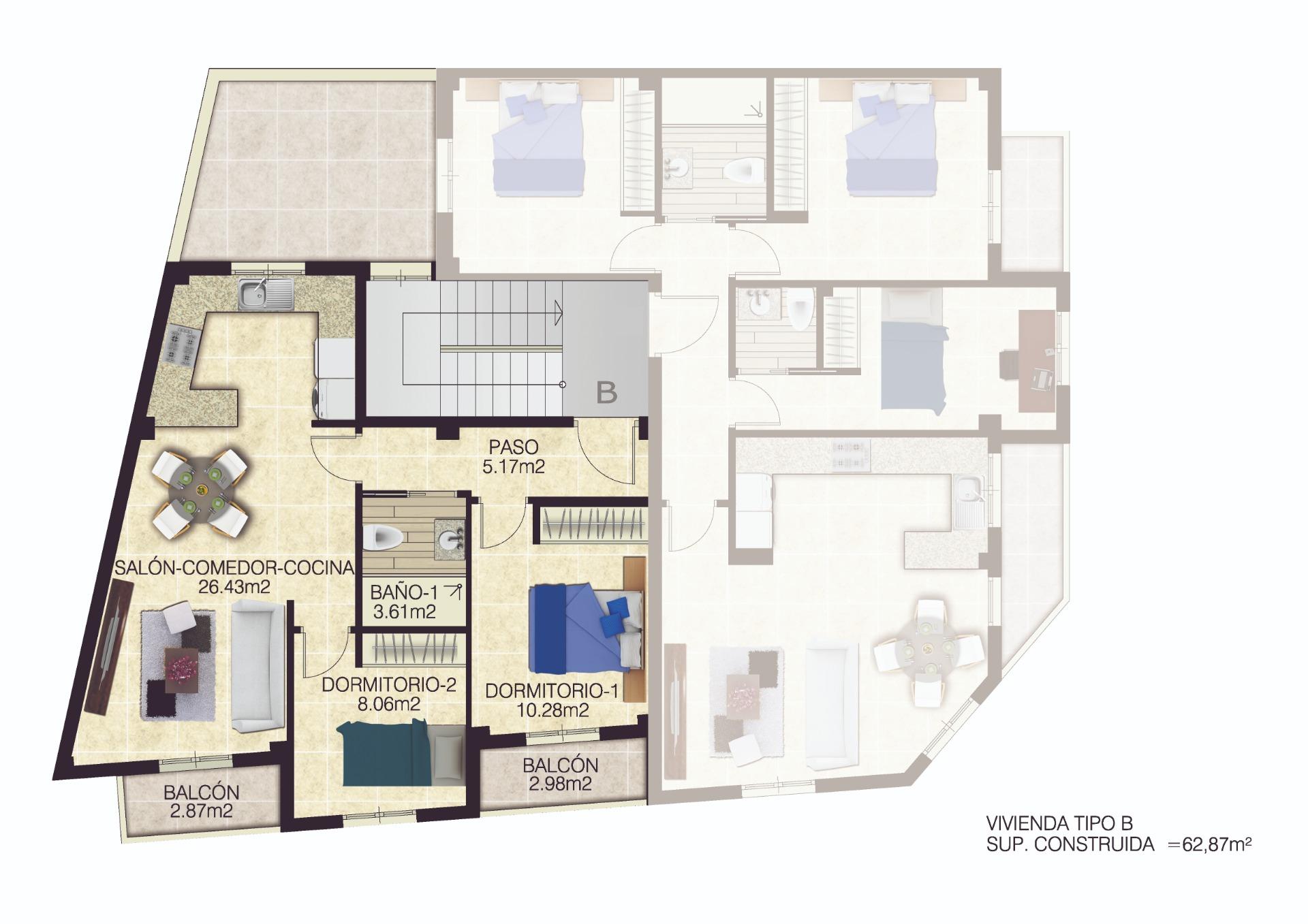 Nybyggda lägenheter i Jacarilla, Alicante Upptäck detta exklusiva nybyggda bostadsområde i Jacarilla med lägenheter med 2 eller 3 sovrum och 1 eller 2 badrum. Alla lägenheter är utrustade med golvvärme i badrum, möblerat kök öppet mot vardagsrummet, inbyggda garderober, säkerhetsdörr och förinstallation för luftkonditionering. Det finns en gemensam solterrass på taket. Privilegierat läge i Jacarilla – en lugn by med utmärkta kommunikationer Jacarilla ligger i hjärtat av Vega Baja, Alicante, och är en charmig traditionell spansk by känd för sitt jordbruksarv, citrusodlingar och pittoreska landskap. Trots sitt lugna läge erbjuder Jacarilla enkel tillgång till viktiga tjänster, inklusive stormarknader, restauranger, apotek och mycket mer. Byn har utmärkta vägförbindelser: Orihuela stad - 10 km. Guardamar del Segura och Medelhavsstränderna - 15 km. Torrevieja - 20 km. Alicante-Elche flygplats (ALC) - 50 km (40 minuter med bil). Golfbanor (Vistabella Golf, La Finca Golf & La Marquesa Golf) - 10-15 km. En idealisk investering eller semesterbostad i hjärtat av Costa Blanca Oavsett om du letar efter en permanent bostad, en semesterbostad eller en solid investering, erbjuder dessa nybyggda lägenheter i Jacarilla en utmärkt möjlighet att njuta av den medelhavsinspirerade livsstilen i ett lugnt men välförbundet område. Kontakta oss idag för att boka en visning eller få mer information om detta fantastiska projekt.