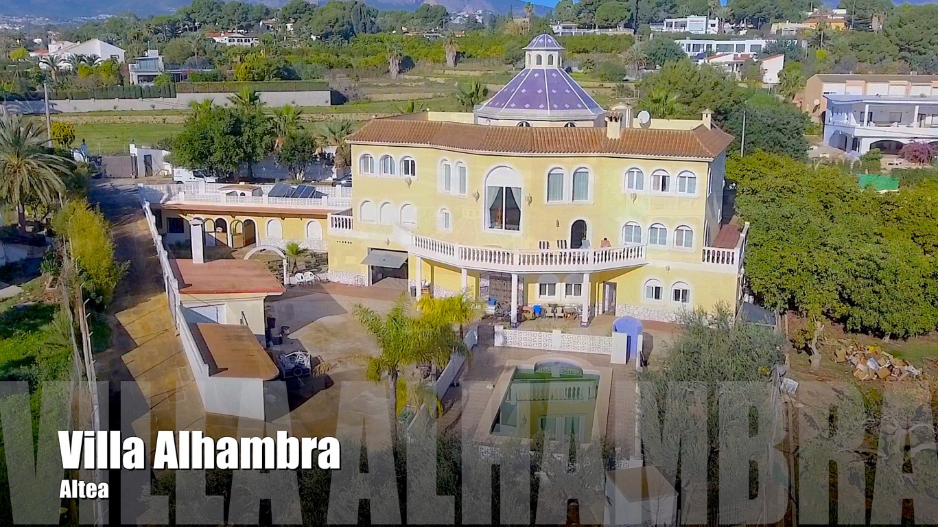 This 1200m2 villa is built like a fortress. Double walls, triple glass, built on an oversize concrete structure. This breathtaking sea view villa is built on a plot of 6.900m2 full with fruit trees as there are  avocados, Nisperos, lemons, oranges, mandarins etc. Beside that also 32 olive trees for oil production. The first surprise is when you enter the villa and see the Alhambra style closed patio. The widest distance between the pillars is already architecture art. Looking up you see how high the patio is and also the dominating arabic chandelier. This patio gives access to the  sea view terrace, kitchen, living room, 2 guest bedrooms and bathroom.  On the first floor there are 2 bedrooms and bathrooms more but also the royal size master bedroom with en suite bathroom and dressing. In the patio there is also a staircase going down to the next surprise. An arabic conference room as big as a ball-room, the moment you think you have seen it all, you open a door and find a double salon room, or cinema room, you name it! On this level is also a guest toilet and access to the double closed garage. In the garden area there is a summer kitchen with wood oven , BBQ etc and last but not least, a stable for 3 horses and a guest apartment with 2 bedrooms, bathroom, living and kitchen.  Some other extras are a 200.000L rainwater deposit,a swimming pool,  free agriculture water, solar panels, and hidden storage rooms. This could be a hotel or your hidden private arabic style paradise. In the patio the walls are all with different Alhambra style tiles telling each other stories..
