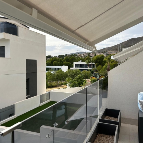 Efter framgången med Seascape presenterar vi nu Seascape Blue ännu ett fantastiskt nytt projekt med lägenheter med fantastisk panoramautsikt mot havet och Benidorm som byggs i området Balcon De Finestrat. Anläggningen ska stå färdig från juni 2025. De är byggda i en förskjuten kaskaddesign så att varje lägenhet kan dra nytta av det mesta av naturligt ljus med stora terrasser och fönster. Det finns olika lägenhetstyper och storlekar mellan de 3 kvarteren. 2 sovrum + 2 badrum; 3 sovrum + 2 Komplexet har nästan sålt slut, så det finns nu bara ett fåtal kvar till försäljning. Modellerna inkluderar duplex bottenvåning med trädgård eller takvåning duplex med terrass. Alla med parkering och förråd ingår i priset. Takvåningarna i duplextyp kommer att ha 2 eller 3 sovrum, panoramaterrass, solarium, 2 eller 3 badrum, 1 studio på övervåningen, förinstallation för jacuzzi. Duplexet med privat trädgård kommer att ha 2 eller 3 sovrum, 2 badrum, terrass, trädgård, förinstallation för jacuzzi, källare med oberoende ingång. Bostäderna har centraliserat luftkonditionering och ventilationssystem och med akustisk och termisk komfort. Badrum med elvärme i golvet och persienner i vardagsrum och master bedroom motoriserat. Priserna varierar beroende på vald modell. Det förstklassiga bostadskomplexet kommer också att ha fantastiska gemensamma faciliteter att njuta av såsom en paddeltennisbana, lekplats, bio-fitness träningsområde, gym och hundgym, gourmetrum för sociala sammankomster och en uppvärmd inomhuspool. Exteriör pool och jacuzzi. 24 timmars övervakning, utsiktsplatser, samarbetsrum och distansarbetsstugor. Kontakta oss för planering, priser för varje typ av lägenhet eller ytterligare information.