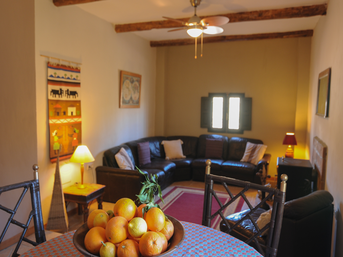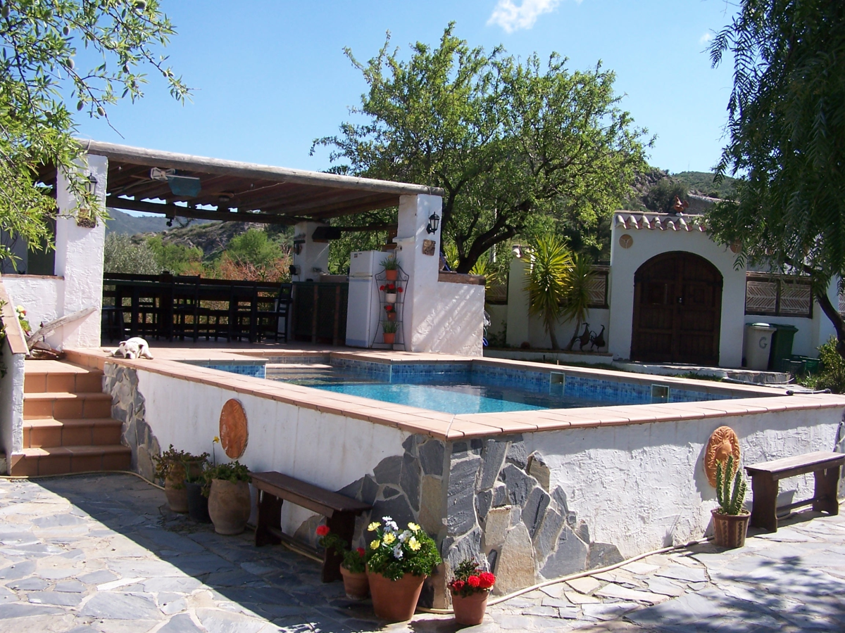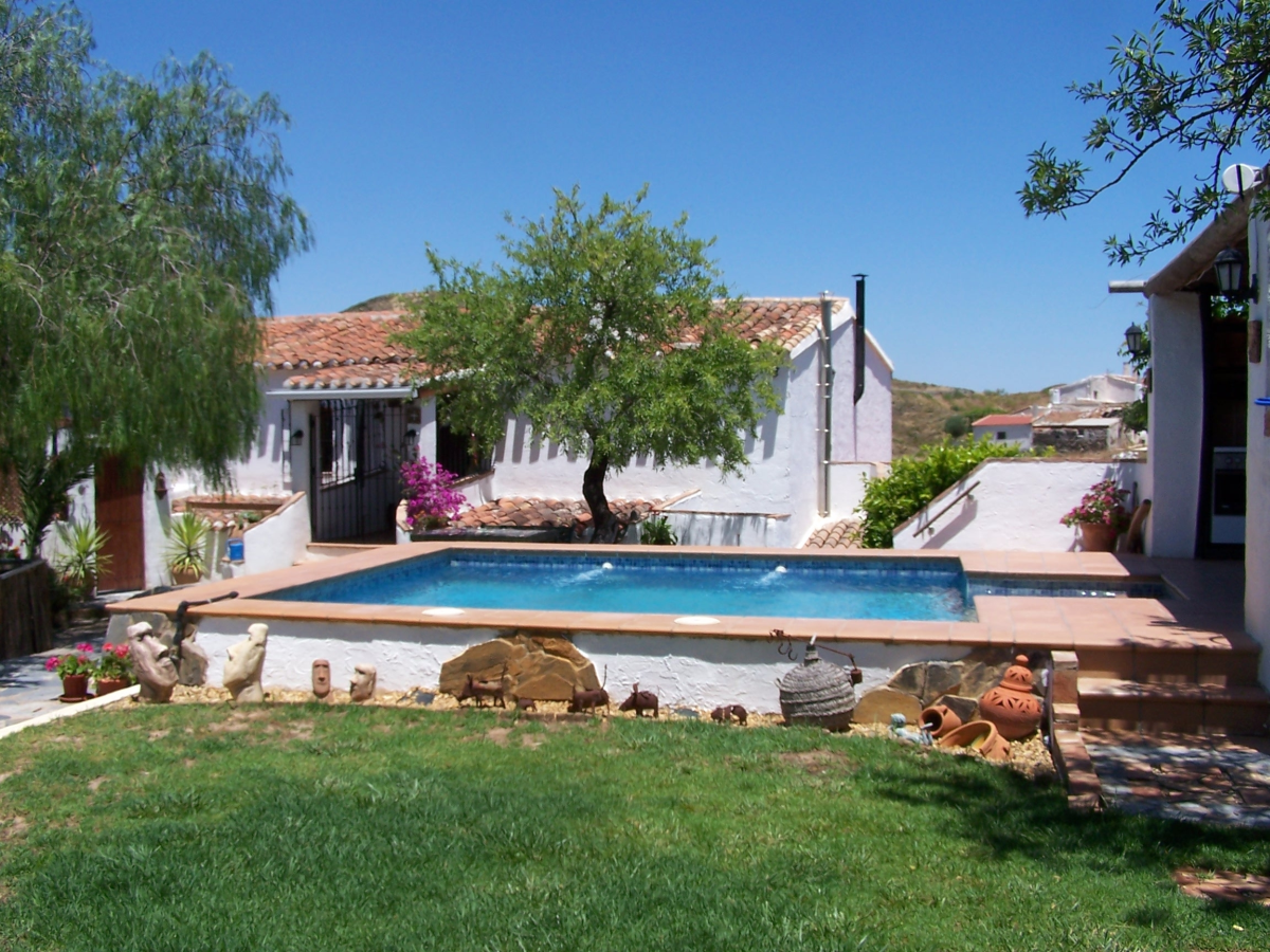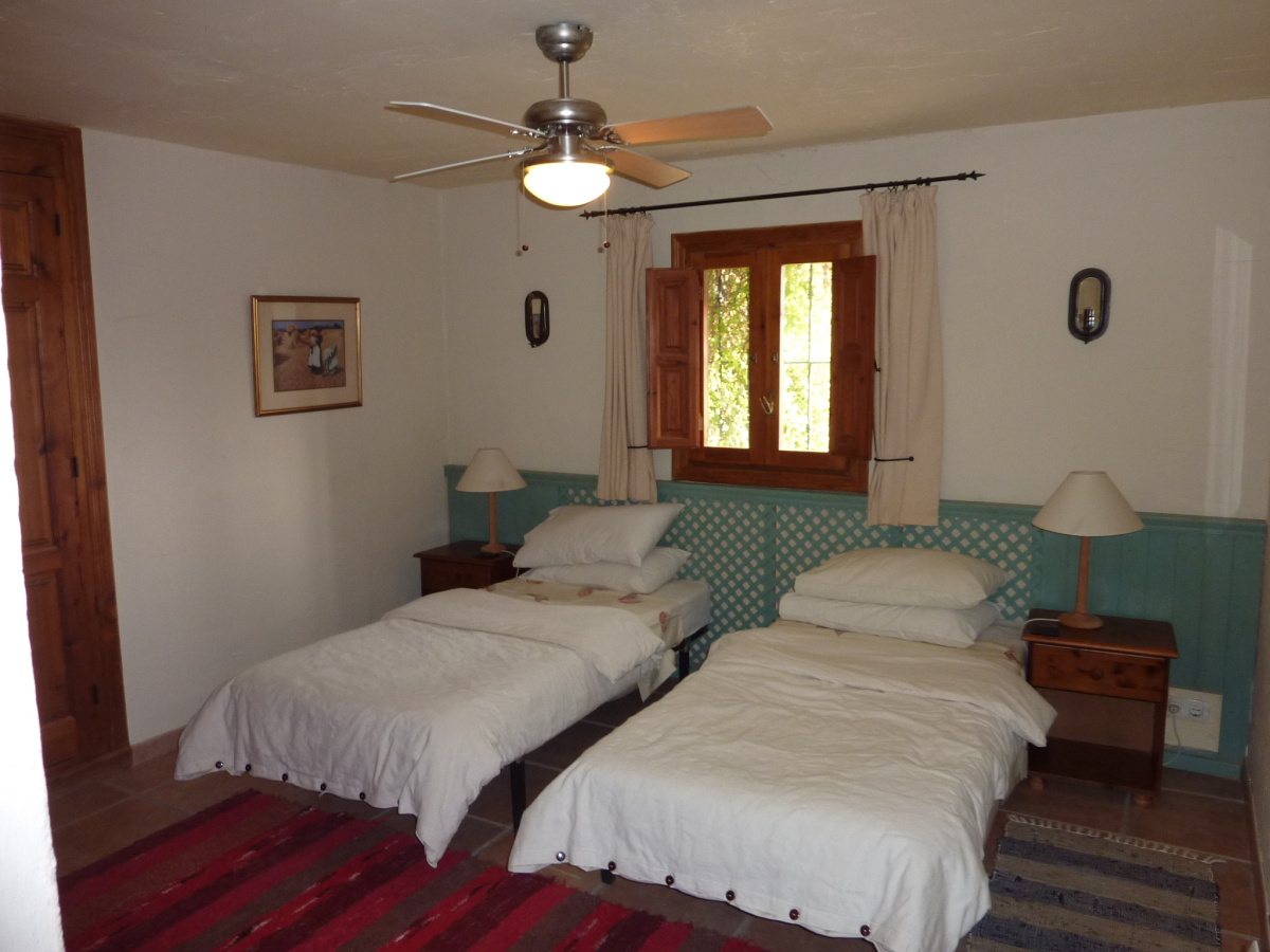 On the bottom terrace of the finca is a 2 bedroom detached cottage which was converted from a barn and has covered porch to the front and walled patio to the rear. Outside a private plunge pool and large open sun terrace. Inside an open plan living area with shuttered windows, log burning stove and ceiling fans. The kitchen is from Ikea with gas hob and oven and freestanding fridge/freezer. There are two double bedrooms with shuttered windows, ceiling fans and electric heating. There is a spacious family bathroom.