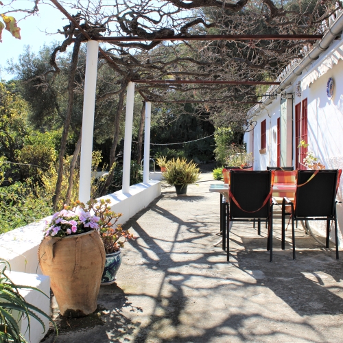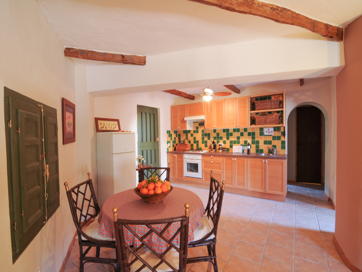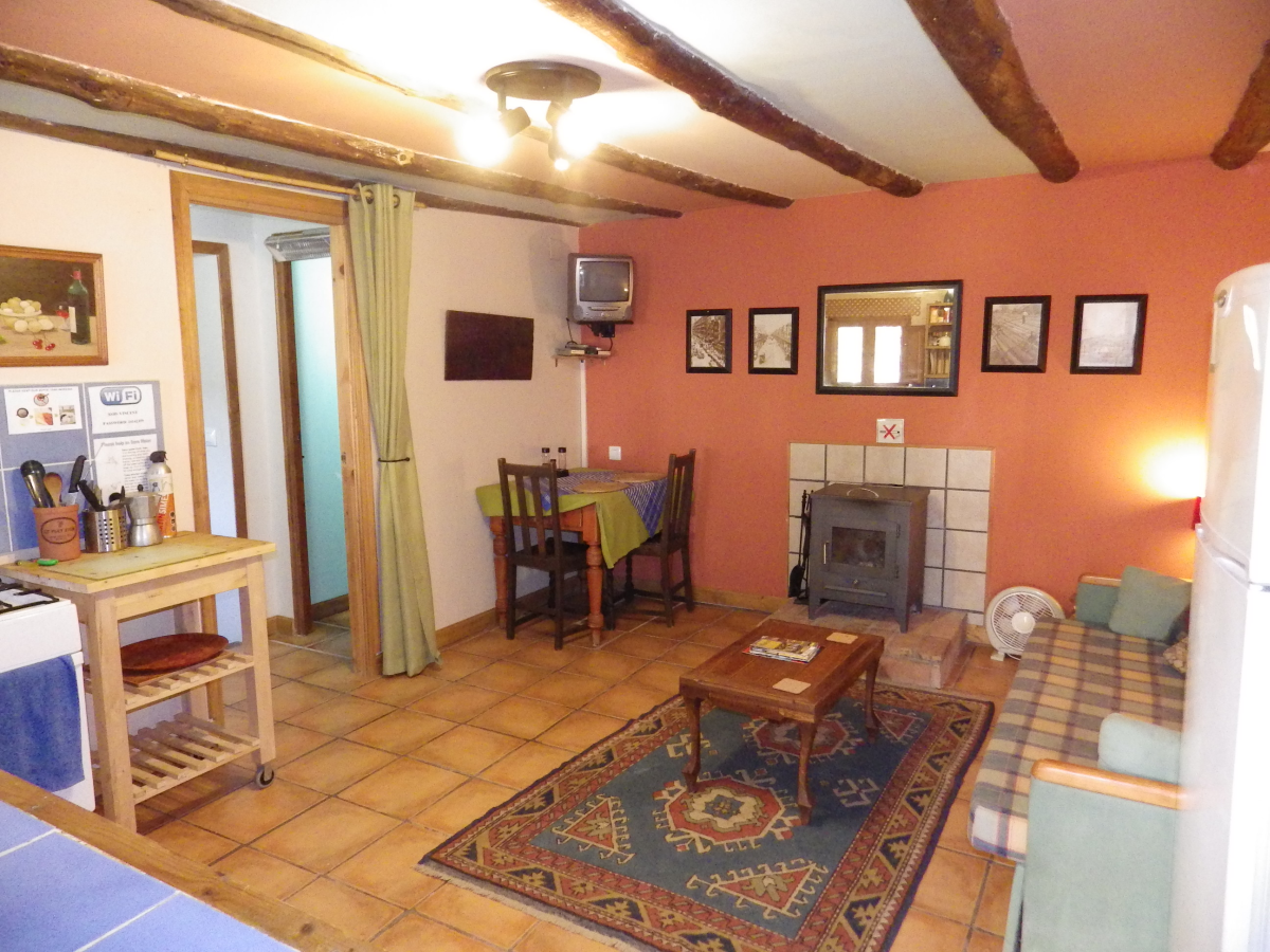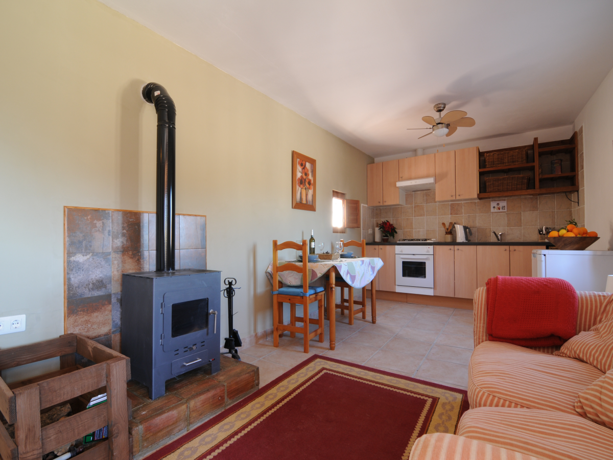 On the same terrace is a 1 bedroom detached cottage converted from a stables. The living area is open plan with Ikea kitchen, gas hob and oven, freestanding fridge, shuttered windows, ceiling fans and log burning stove. There is a double bedroom with shuttered window, ceiling fan and electric heating. Outside a private plunge pool and open and covered terraces. Landscaping is made up of pea gravel lawns bordered by grape vines and oleander and there are an abundance of Almond, Olive and Pomegranate trees.