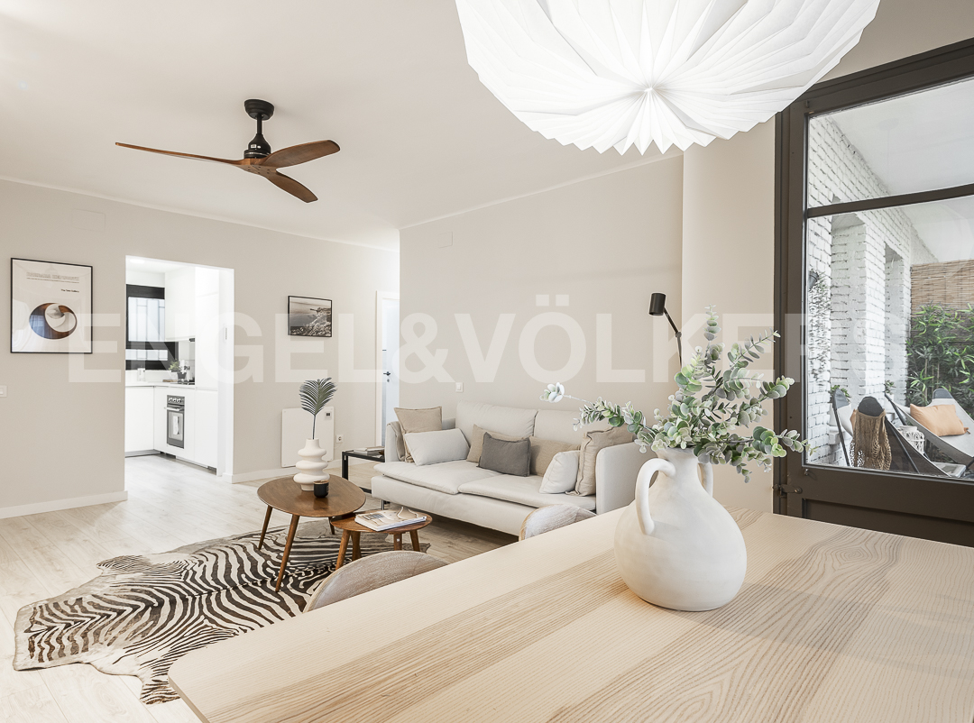 Spectacular exterior penthouse renovated with top quality finishes in the heart of Barceloneta has been renovated in 2020 with a lot of style. It is distributed in a spacious and bright living room, 2 bedrooms (1 double and 1 single), a large fully equipped independent kitchen and a complete bathroom with a shower. Very room of the property is exterior. It stands out for its optimal functionality and comfort.
