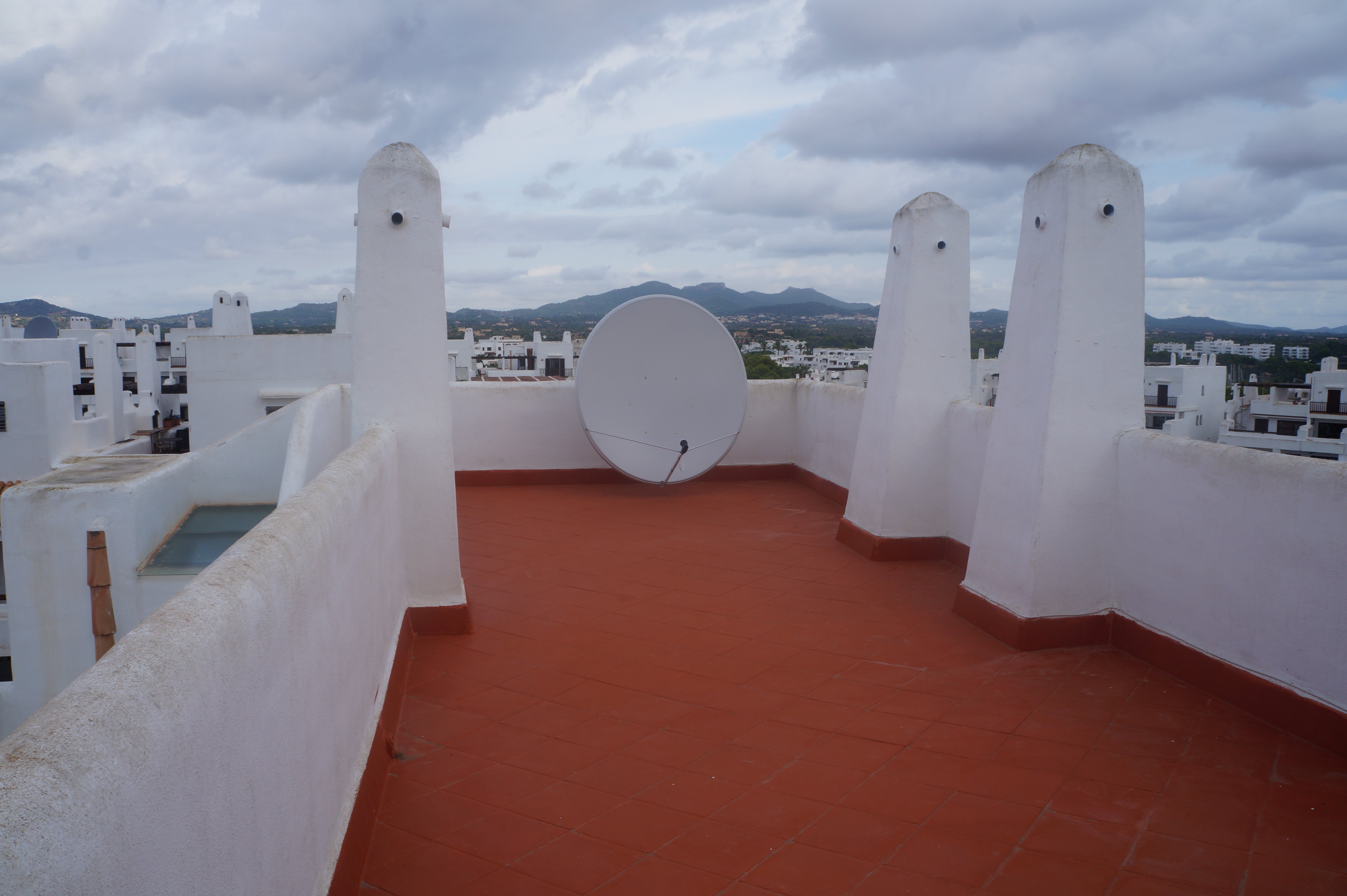 Penthouse duplex in popular complex with sea views close to the cala d'or marina. 80m2 with 2 bedrooms, bathroom + guest toilet, equipped kitchen + utility, reverse air conditioning, huge terraces incl. roof terrace + bbq. 7 communal pools, gated parking, sold fully furnished.