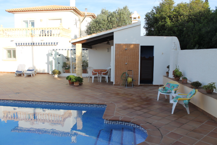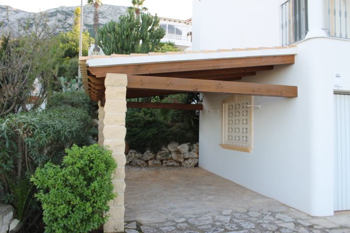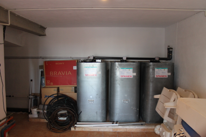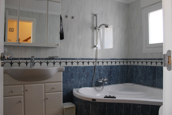 From the middle level you have access to a nice pool area where you also have sea views. Beside of the pool there is a nice garden/plot of 400m2 with olive trees and nice places to enjoy the sun set. The complete outside area is easy to maintain and has been landscaped with Mediterranean plants. Comfortable patio areas are located all around the house. A inside garage and a carport, and off road parking for several cars are available for your vehicles.