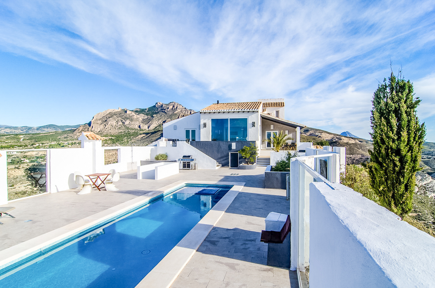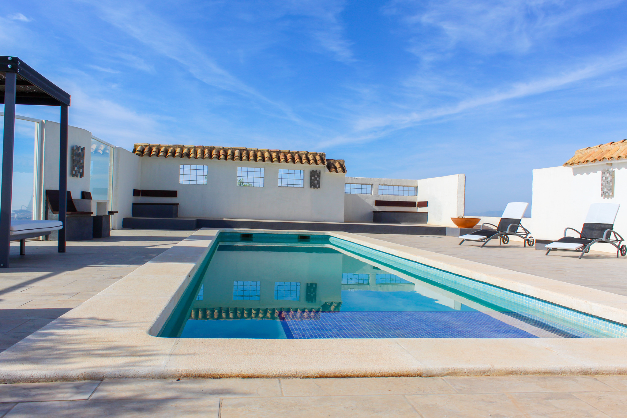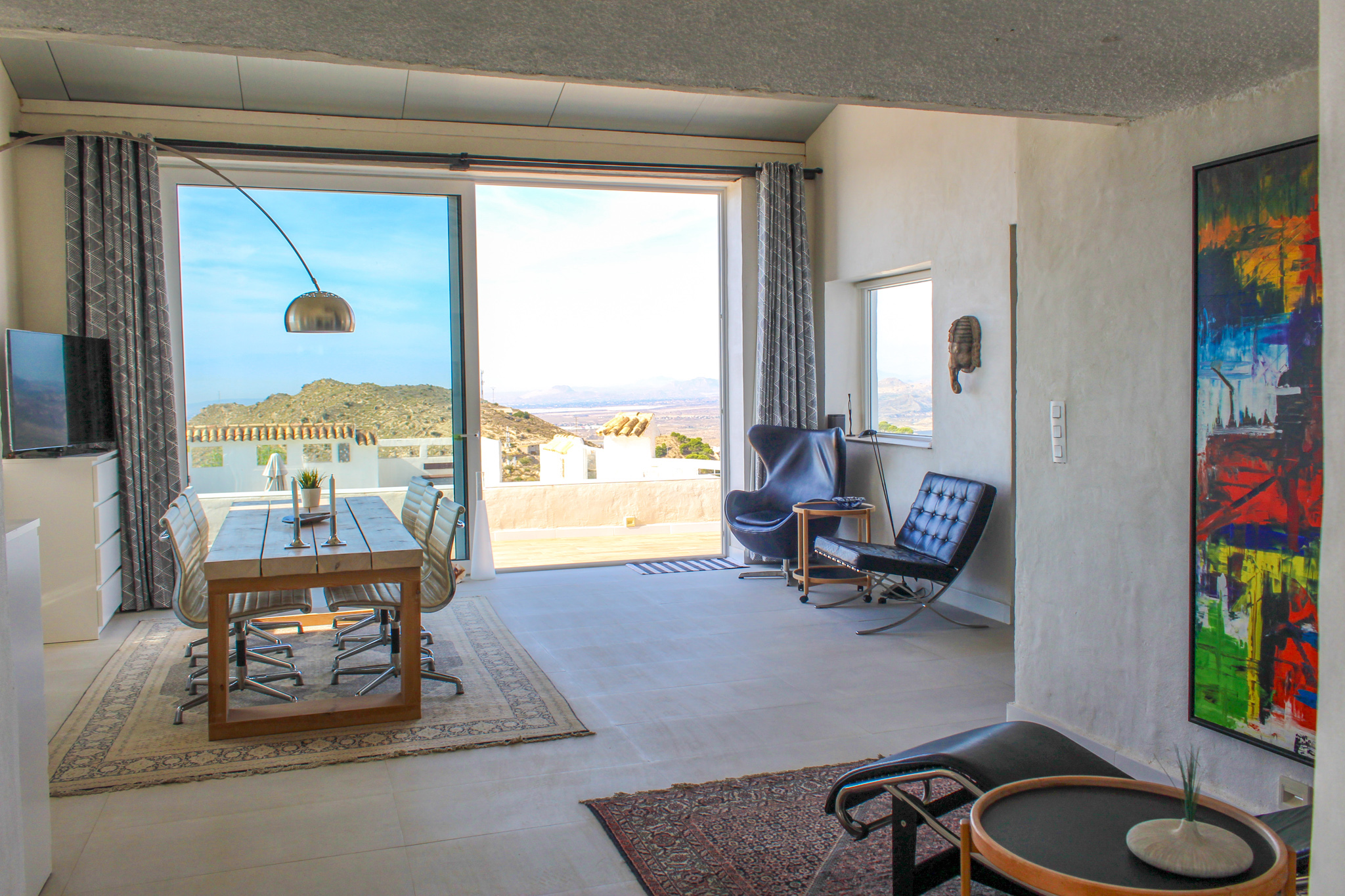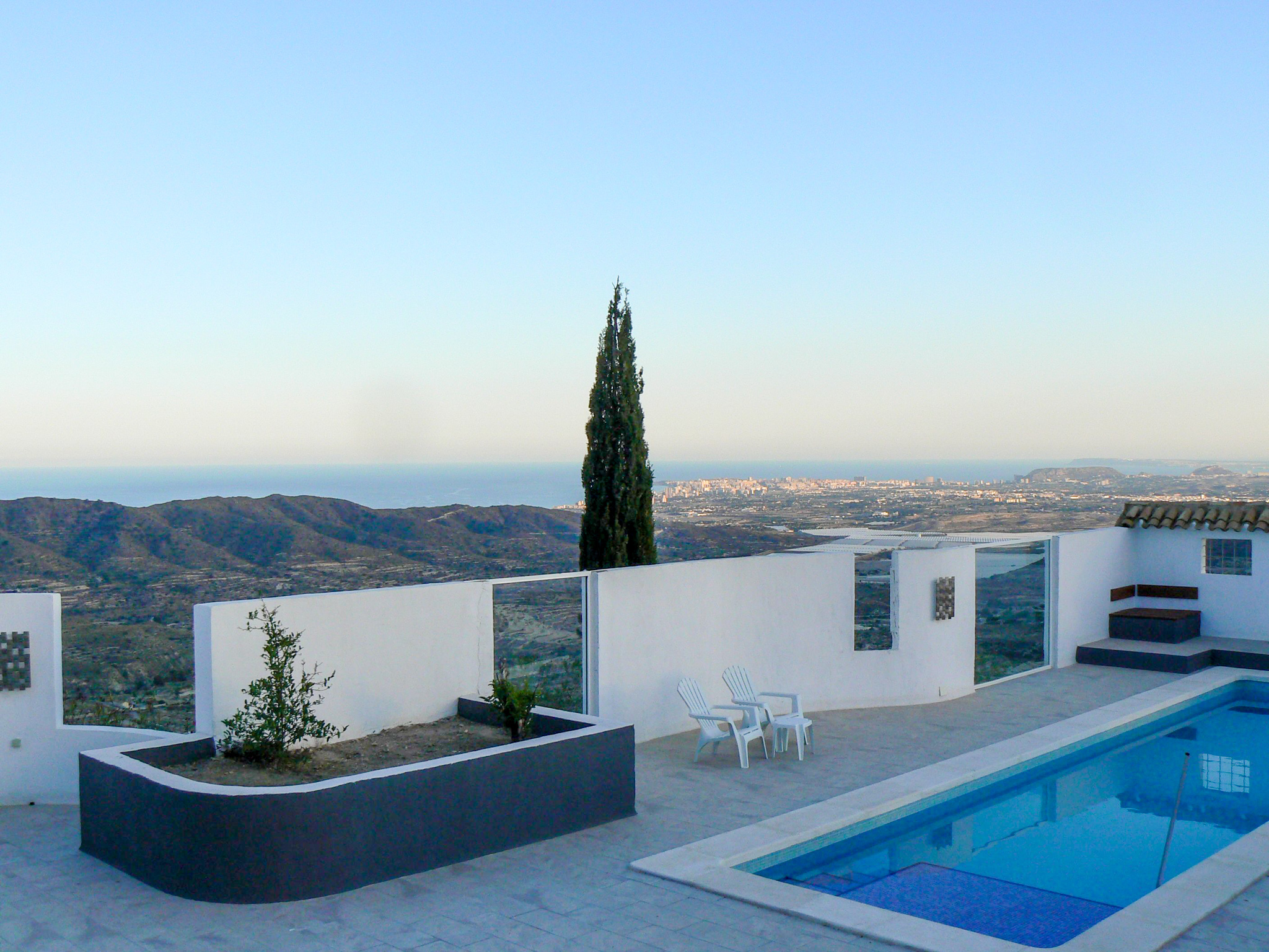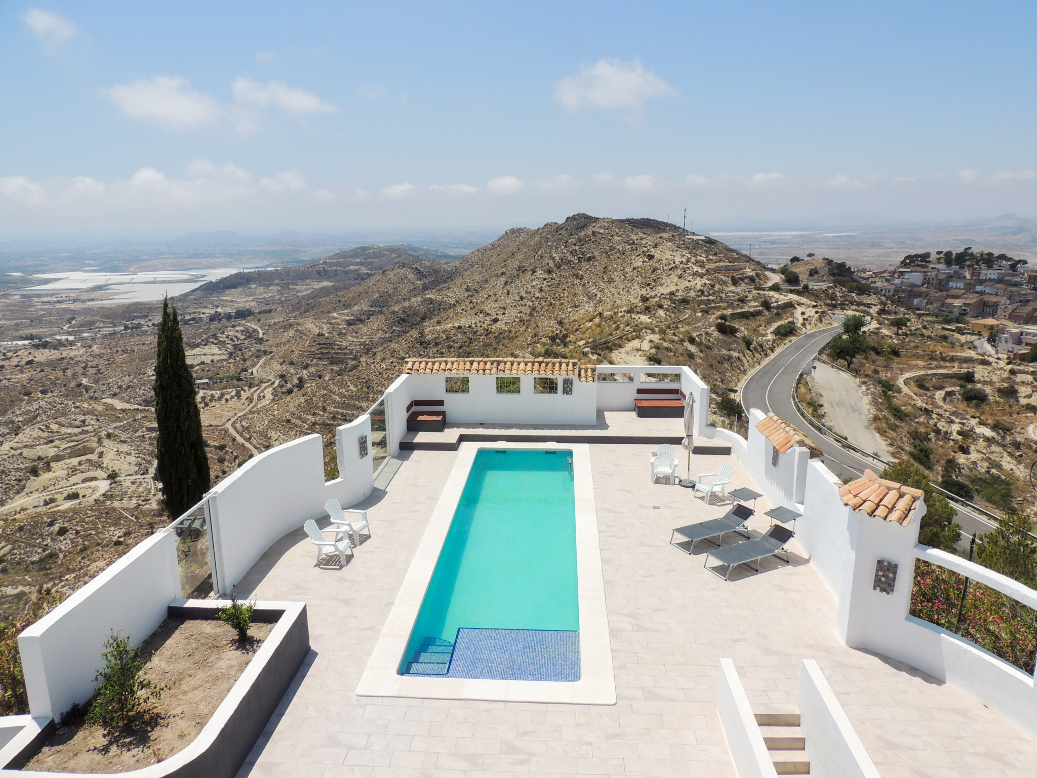 This fantastic villa is with its location completely unique, as you have unobstructed views in all directions - no matter where in the house or on the plot you are. There are beautiful landscapes as far as the eye can see, in fact you can see all the way to Murcia and Cartagena. In the evening, there is a spectacular light from Alicante, which lights up the entire coastline.