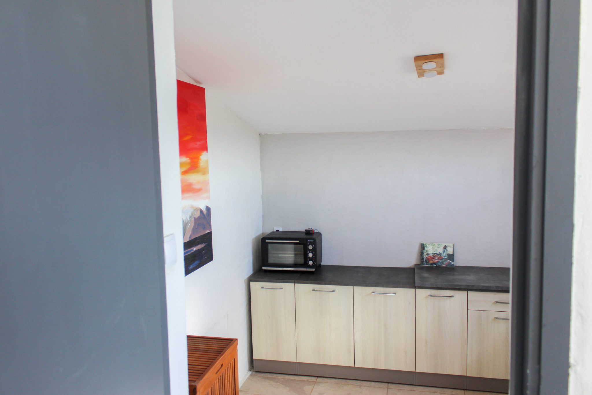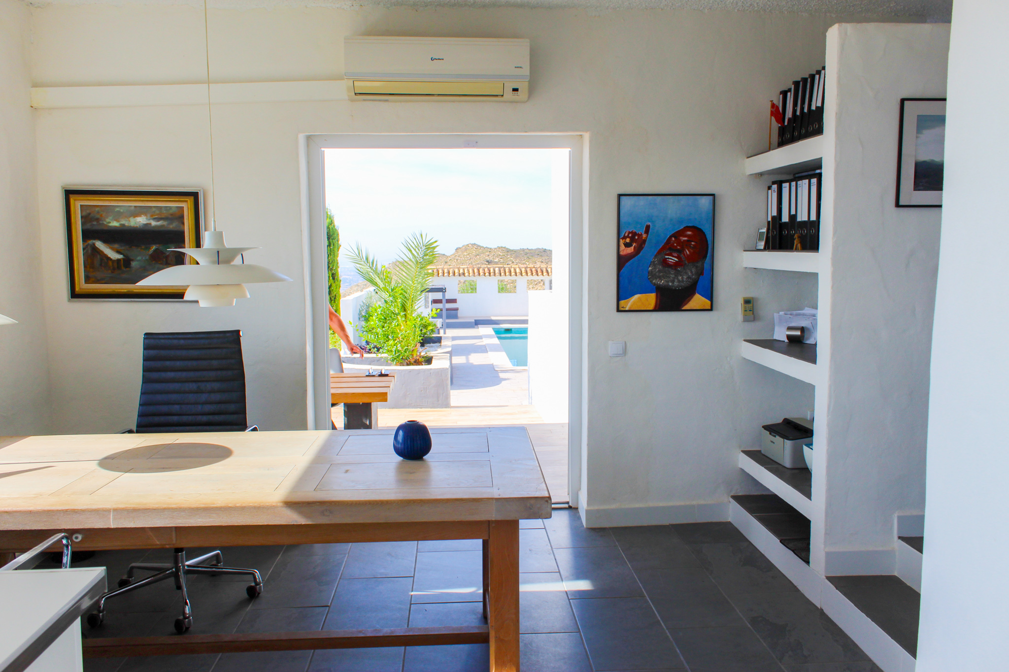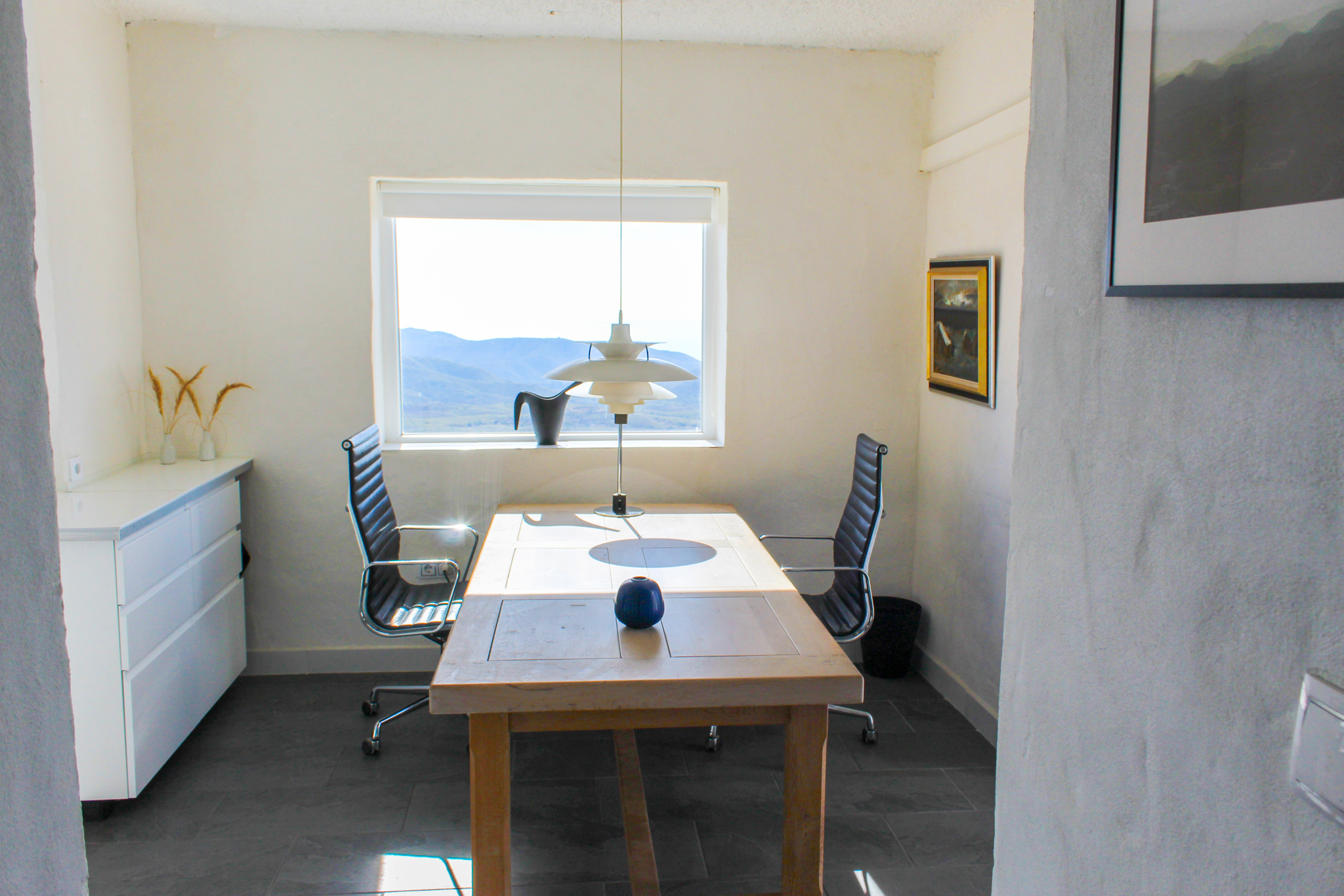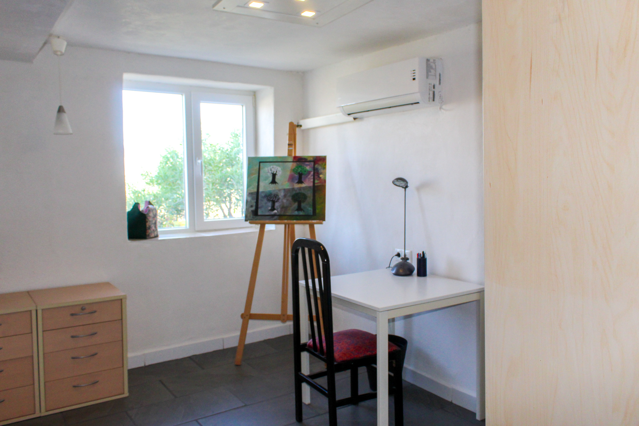 The home consists of a separate garage, 5 rooms of which 2 of them currently function as bedrooms with bathrooms en-suite and 3 additional rooms, which are used as studios, office / storage and a 'meeting room' which will be ideal to use as office if you want to do business from here, as there is a direct entrance from the driveway. There are 3 bathrooms in the residence, 2 of which are connected to the bedrooms. The fifth room, which currently is used as a ‘meeting room’, can easily be integrated with access from the second bedroom and can possibly be used as a large walk-in closet.